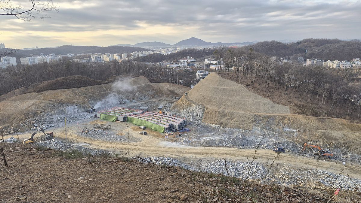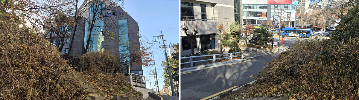 (등서초등학교쪽에서는 절개지에 막혀 올라올 수가 없는 상황이고)