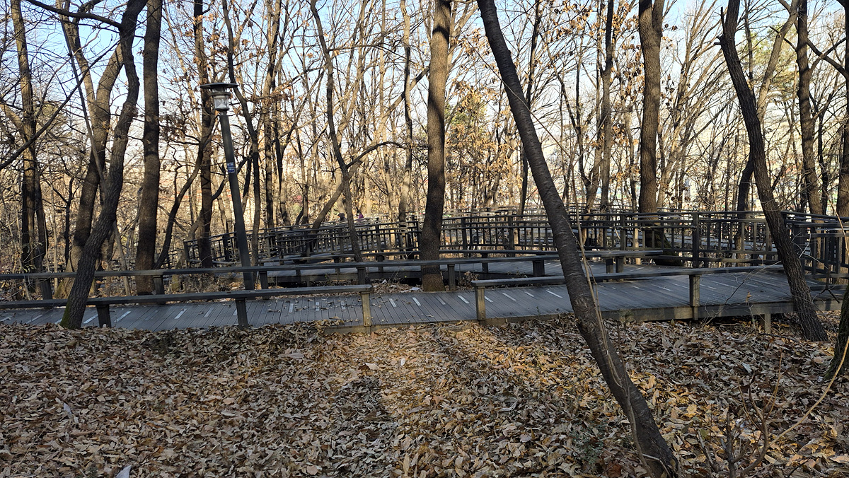 (전망데크가 나오지만 나무에 가린 채 조망은 없다)