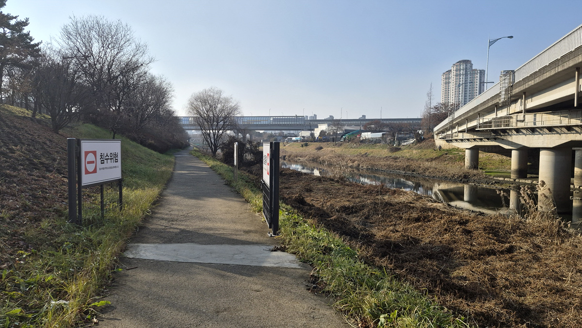 (동부간선수로와 만나는 이곳이 대장들판길 초입인데 공사장 진입도로는 열려있는 듯 싶지만)