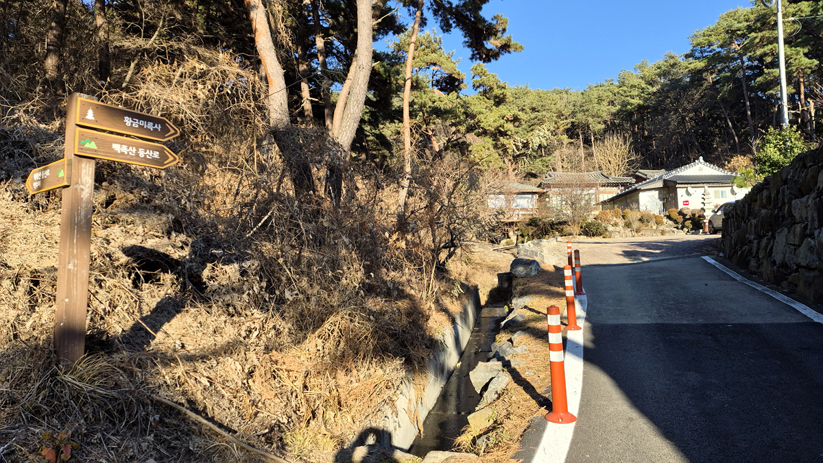 (좌측 혜은사 방향으로 주등로가 내려선다)