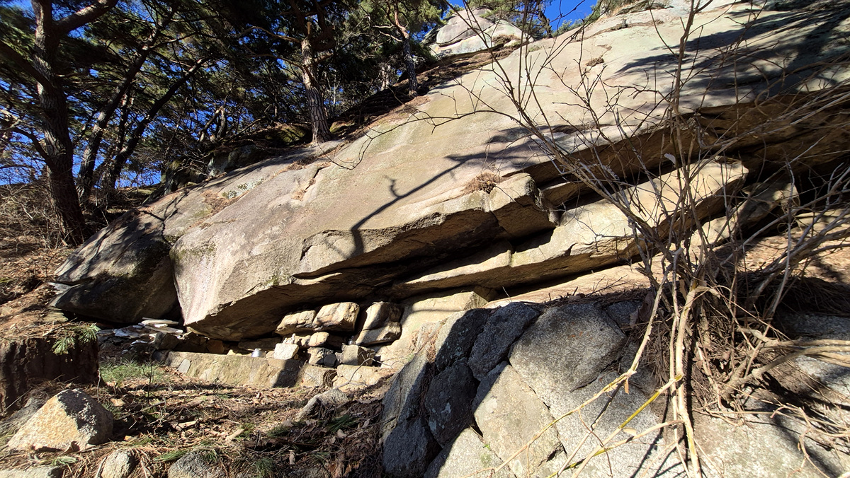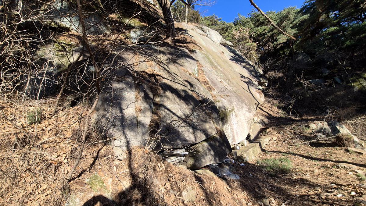 (조금 가면 기도 흔적이 있는 거대한 암반 아래쪽으로 내려서게 되고)