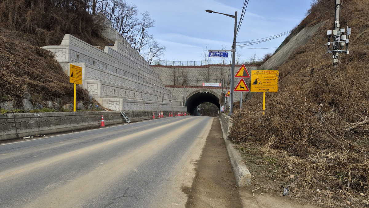 (월오가덕로로 내려서서 본 미터재 생태터널)
