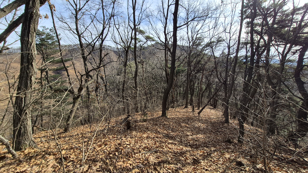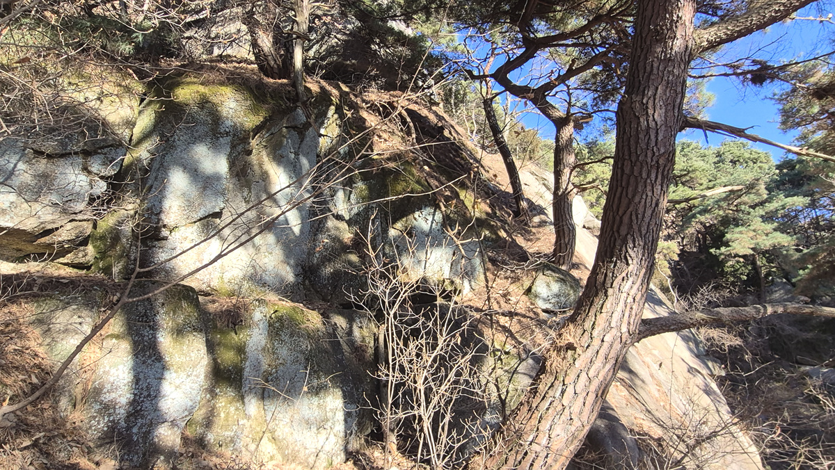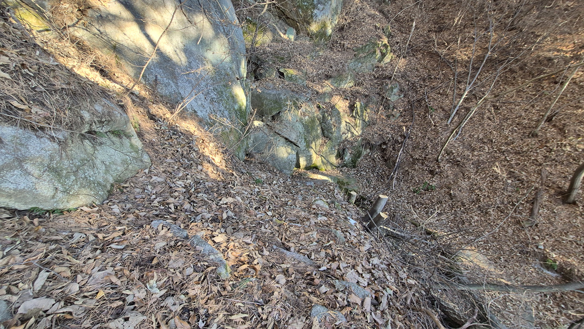 (여기서는 벌목지 능선쪽으로 안 가고 암벽이 있는 좌측 사면으로)