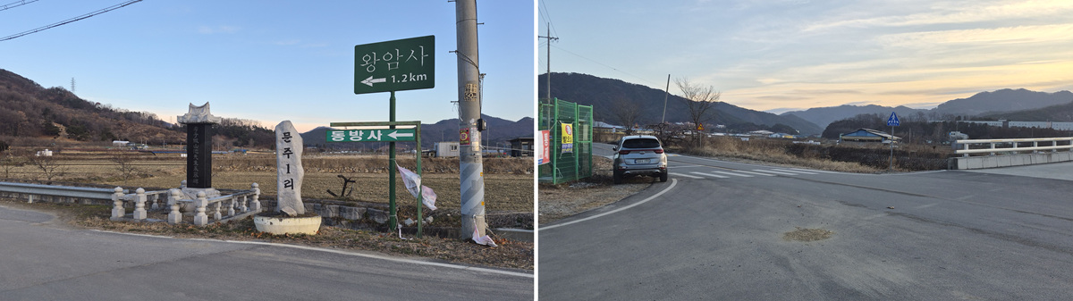 (왕암사 1.2km 이정표가 있는 문주리마을 입구 문주교 도로 한켠에 주차하고)
