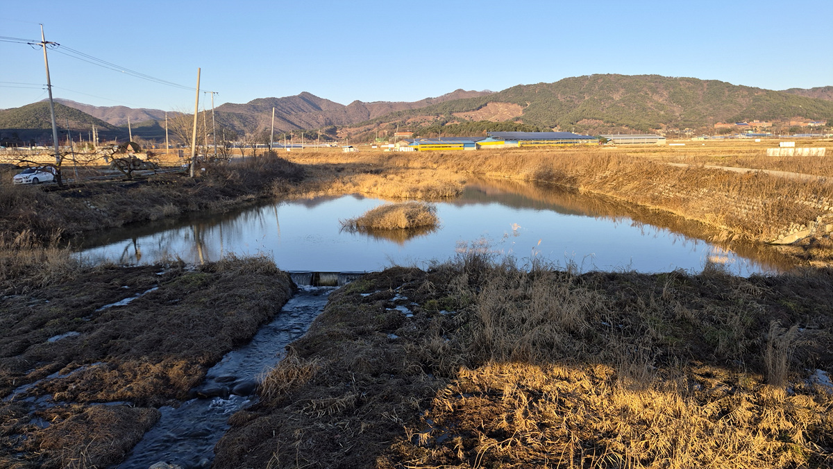 (저 앞에 제방이 보이지만 길게 돌아가야 한다)