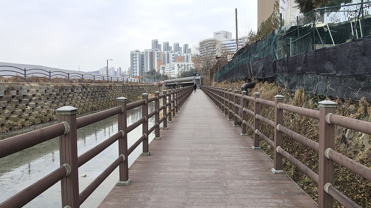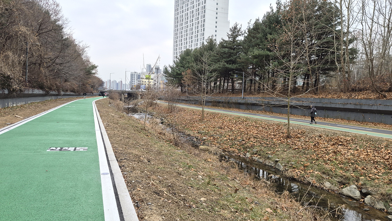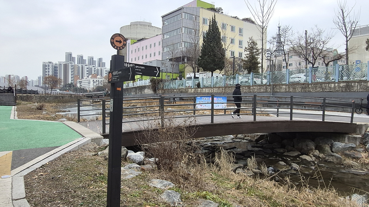 (바로 4코스가 이어지는 묵동천 산책로로 들어선다)