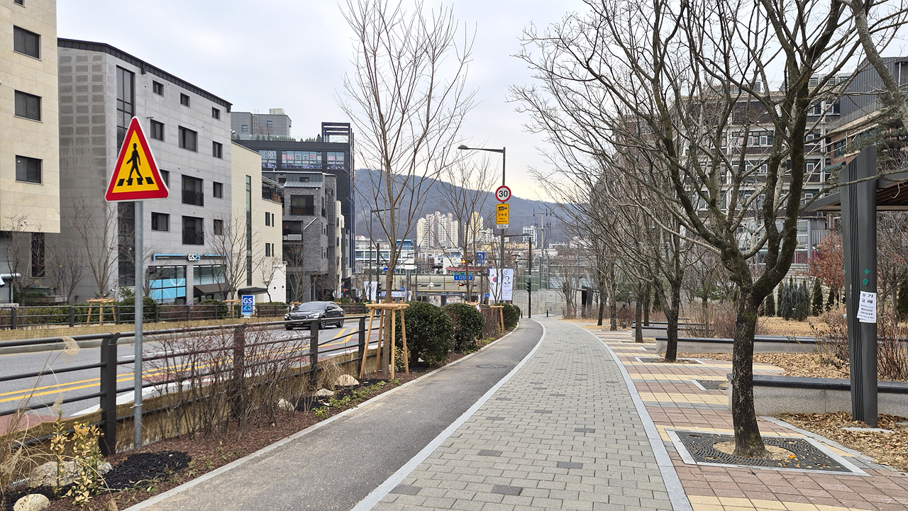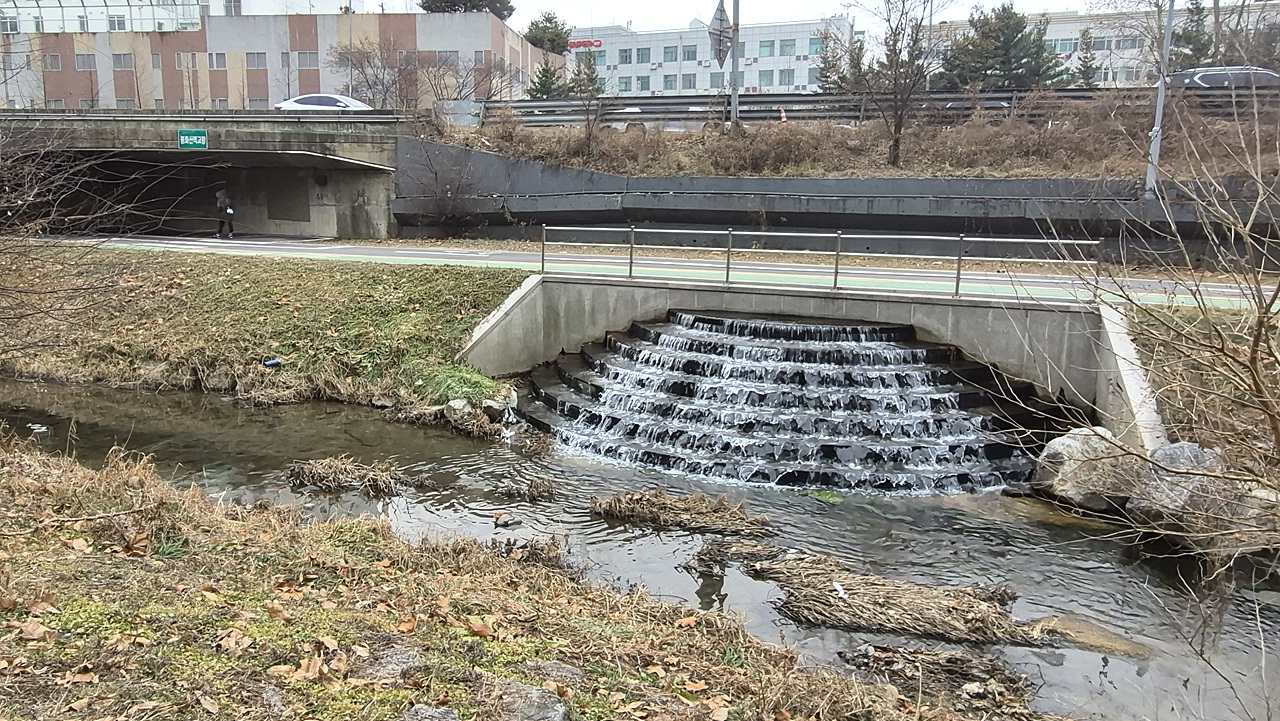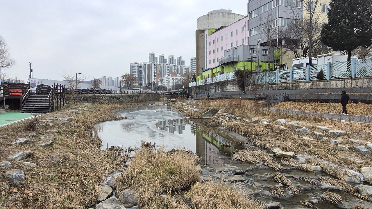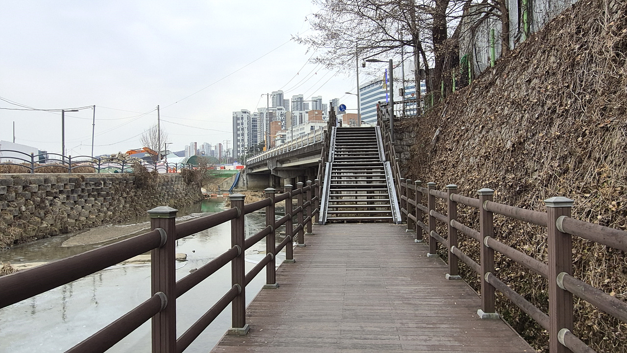 (바로 4코스가 이어지는 묵동천 산책로로 들어선다)