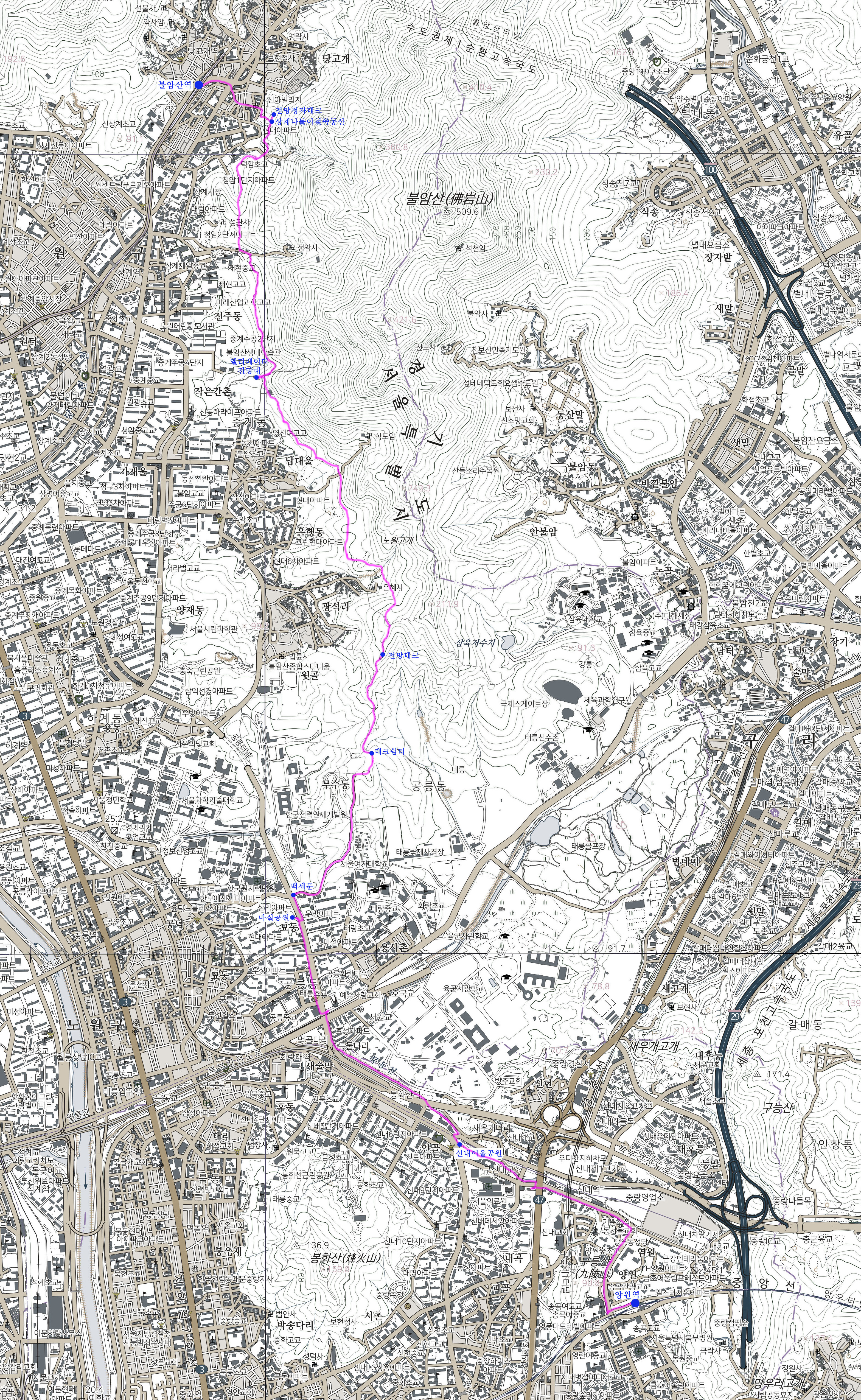 (백사마을 방향 하산길은 재개발로 폐쇄되었다)