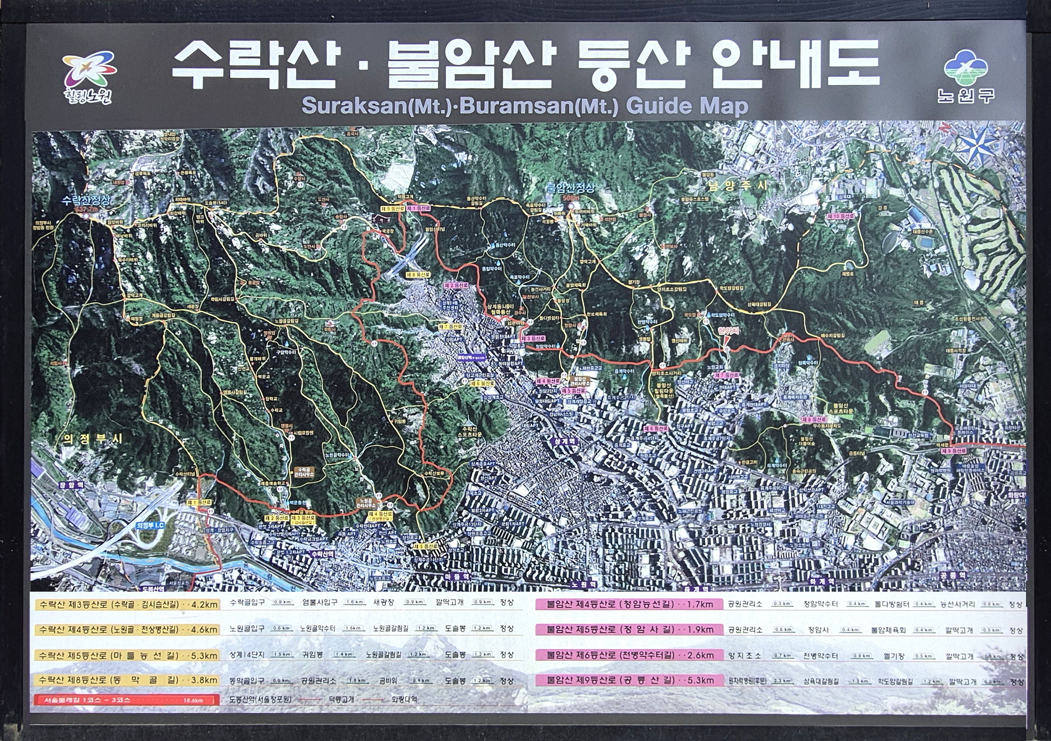 (화랑대사거리 서울둘레길 수락산-불암산코스 안내판)