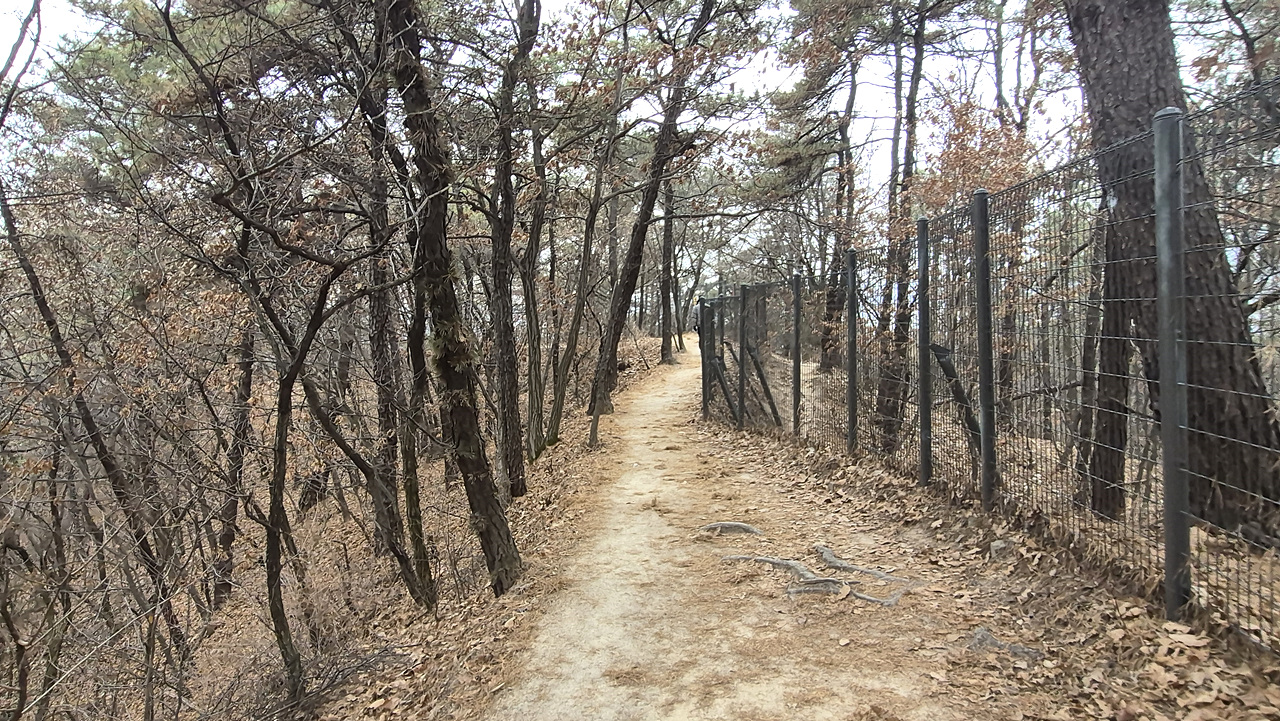 (이후는 양쪽 울타리 사이로 이어지는 산길... 좌측은 태능 우측은 부대 울타리이다)