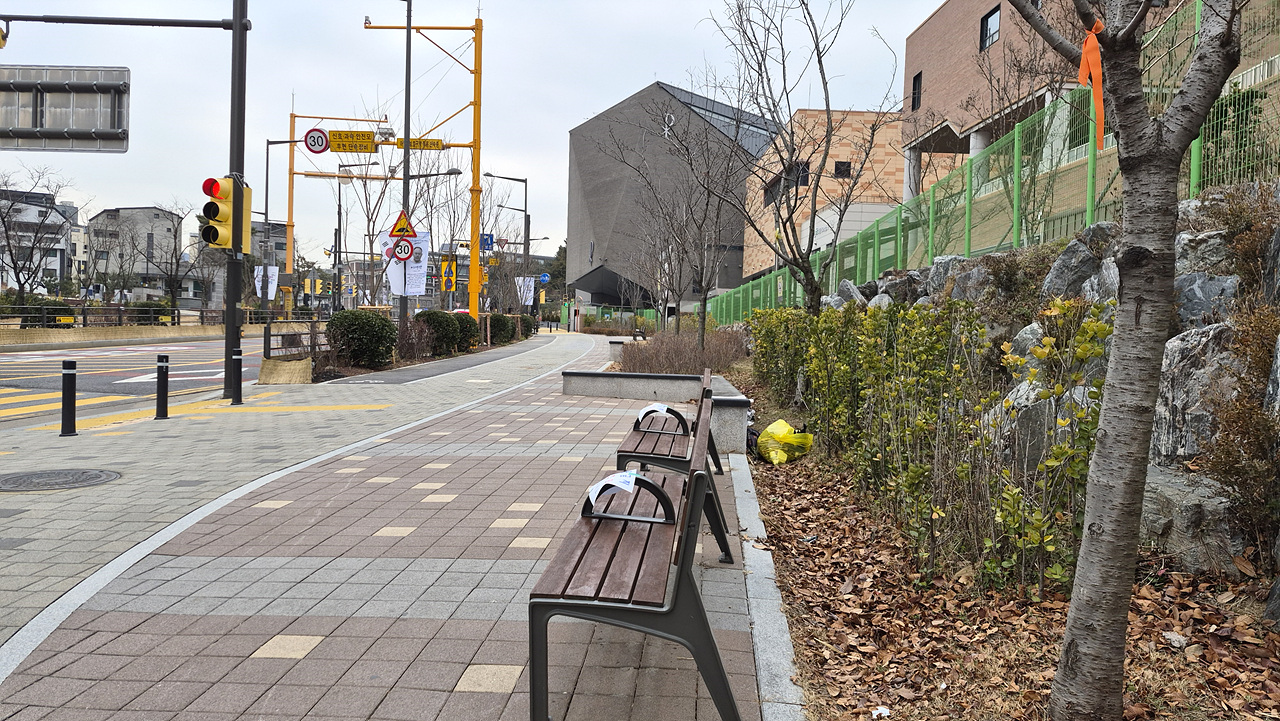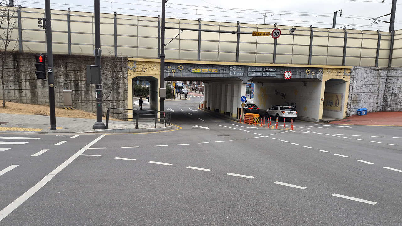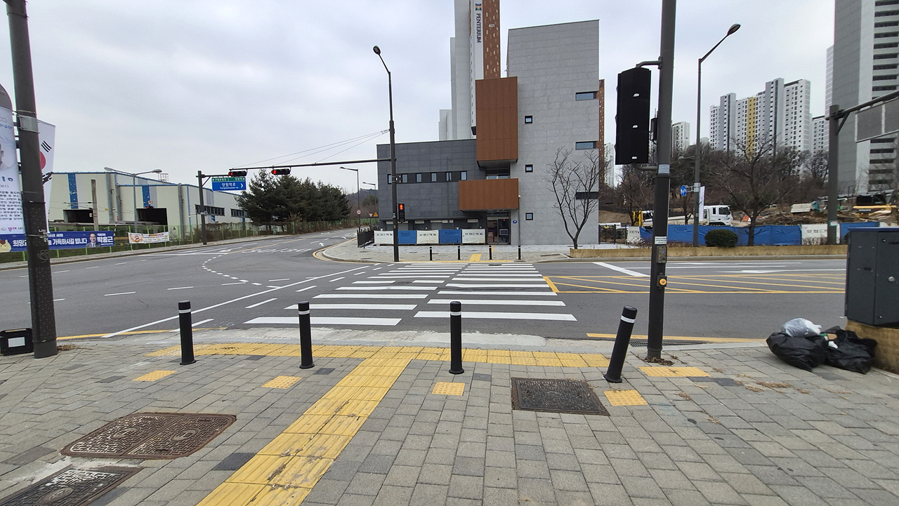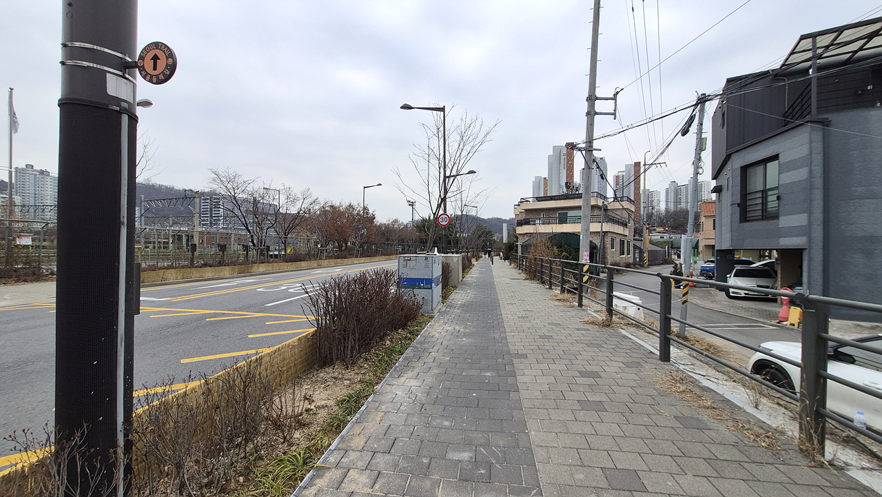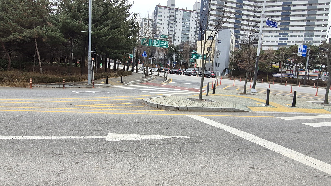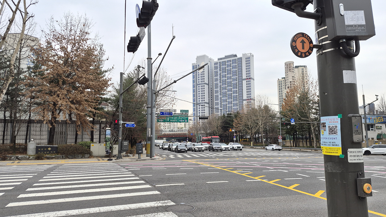 (신호대기 시간이 상당히 긴 용마산로 교차로를 건넌다)