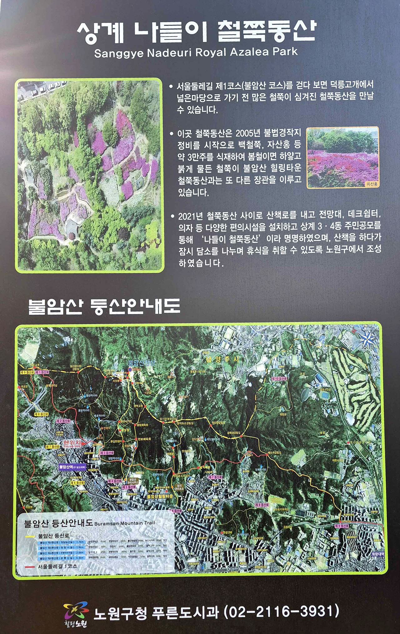 불암산역(11:10)-상계나들이철쭉동산입구(11:17)-상계나들이철쭉동산/서울둘레길3코스시점(11:21~24)