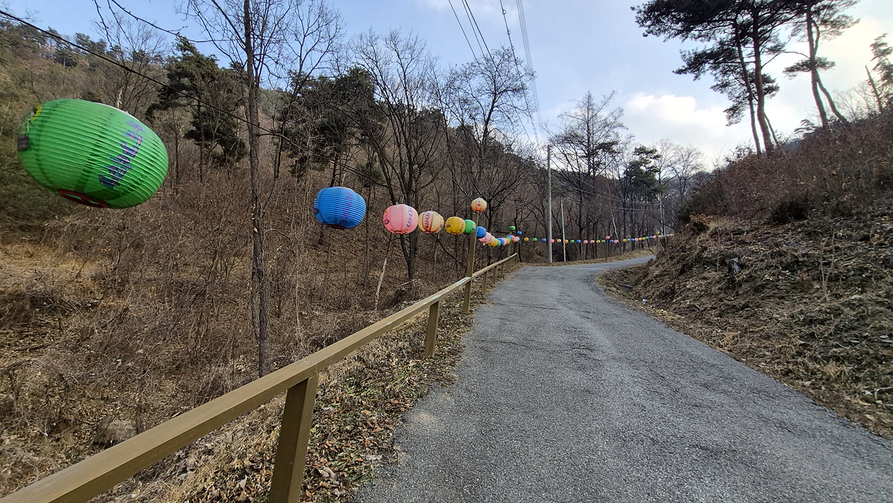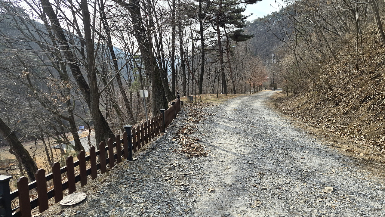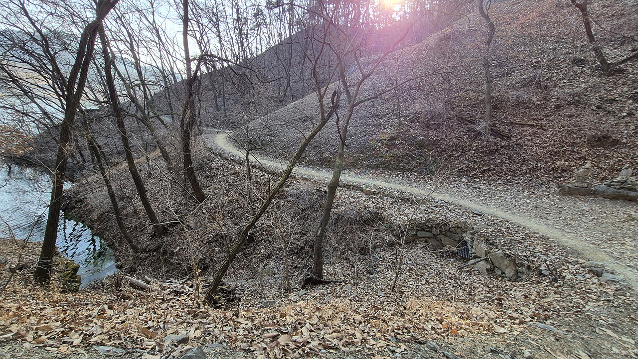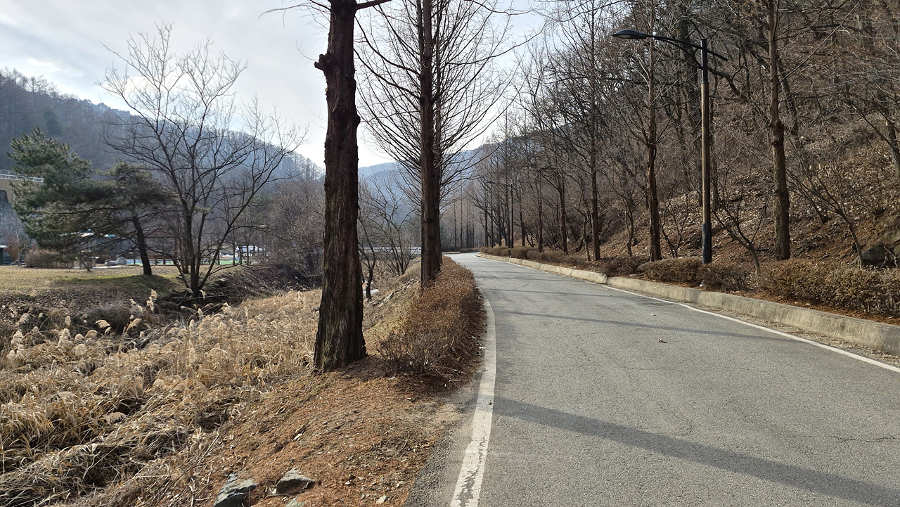 (삼거리에서 좌측으로 온실원 방향 길을 택한다)