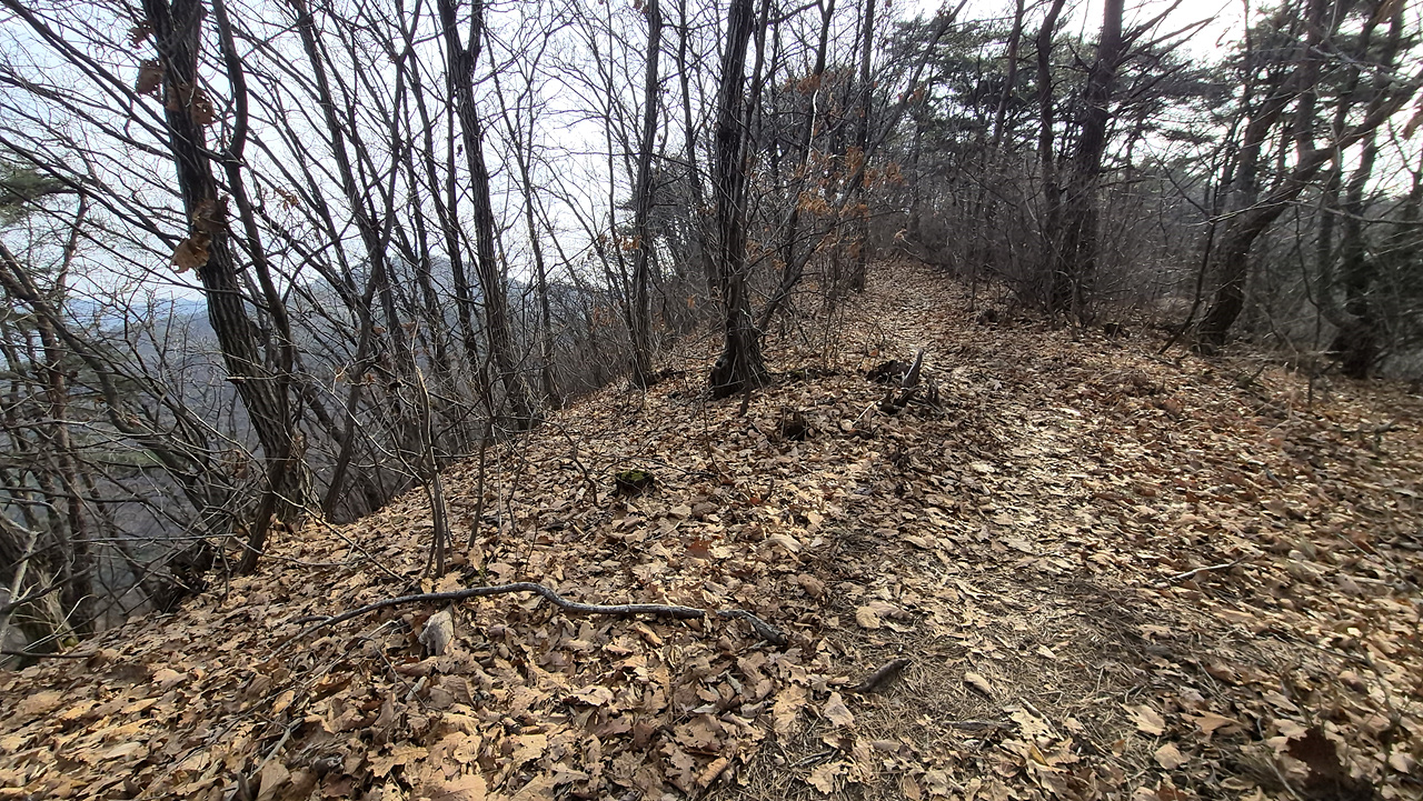 (직진 방향 조금 흐릿해진 산길을 따른다)