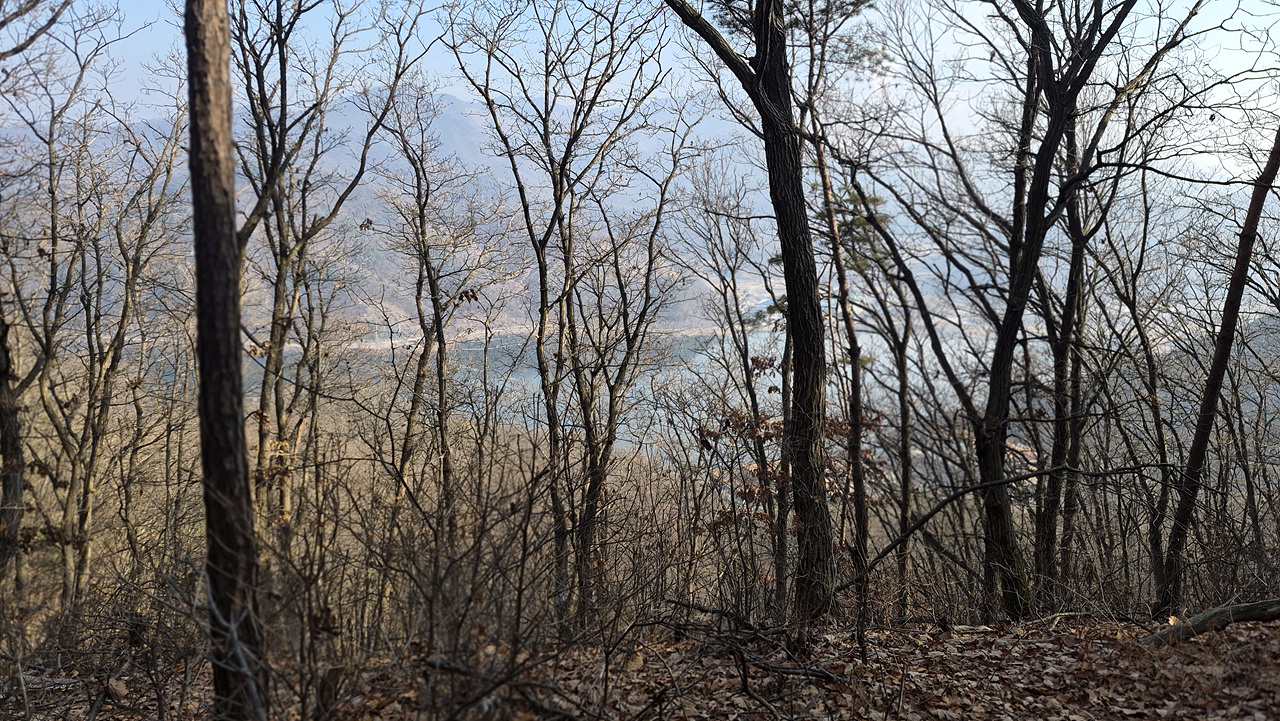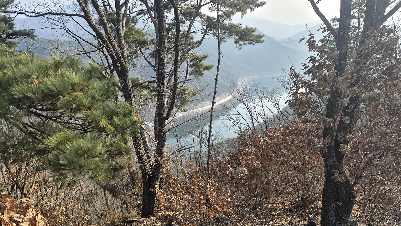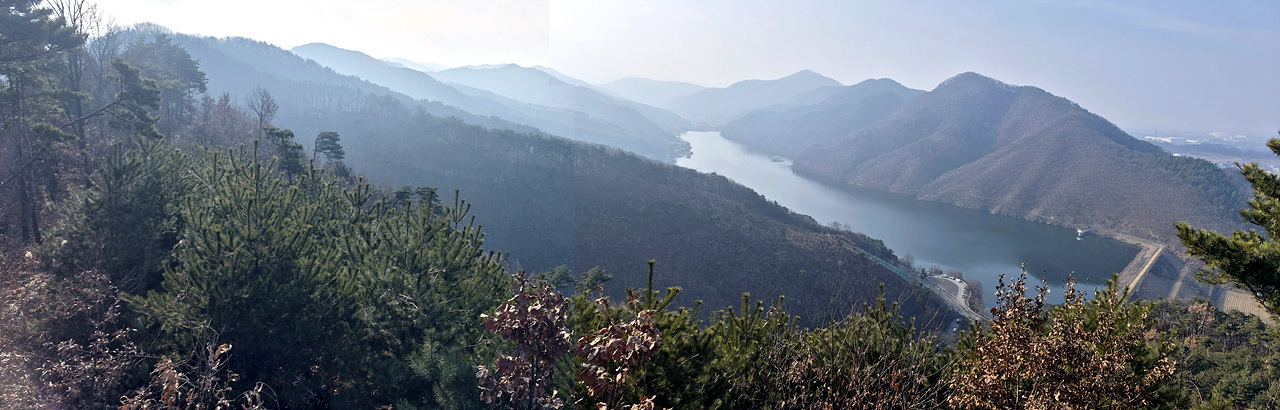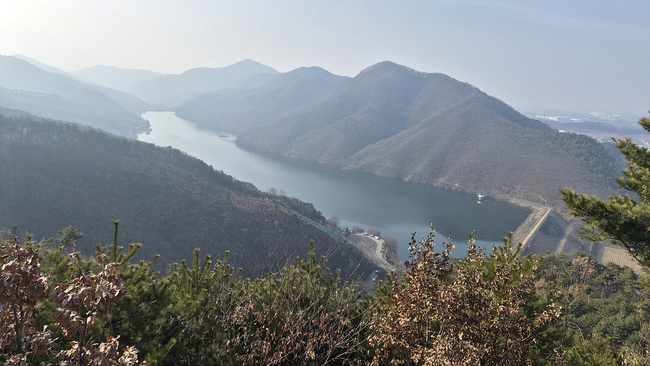 (생바위산 전망대에서 용계저수지와 맨 뒤 소속리산)
