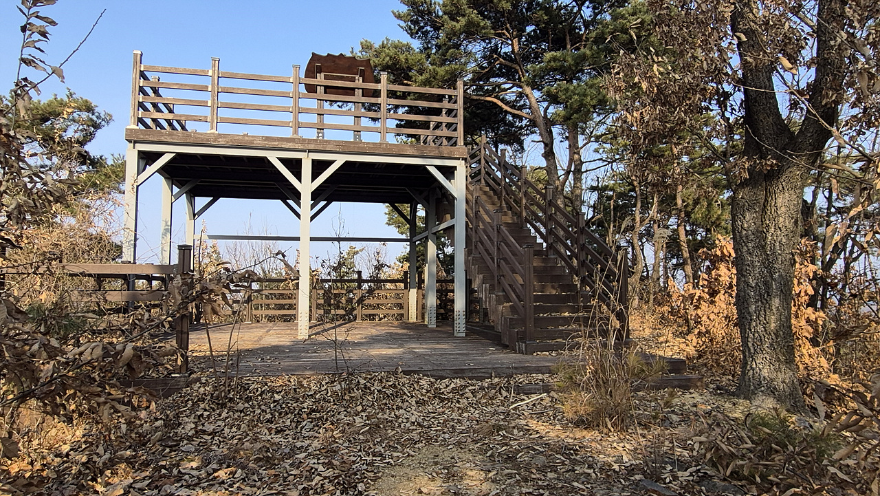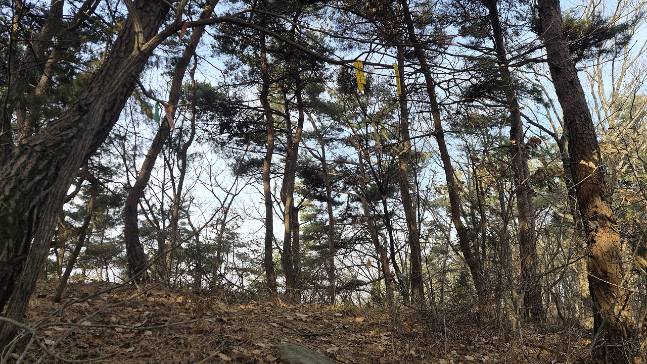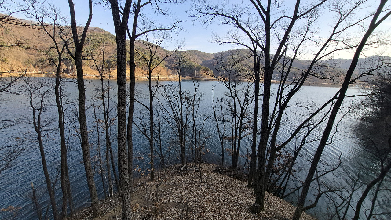 (나무 사이로 무극저수지가 내려보일 뿐 조망은 없다)