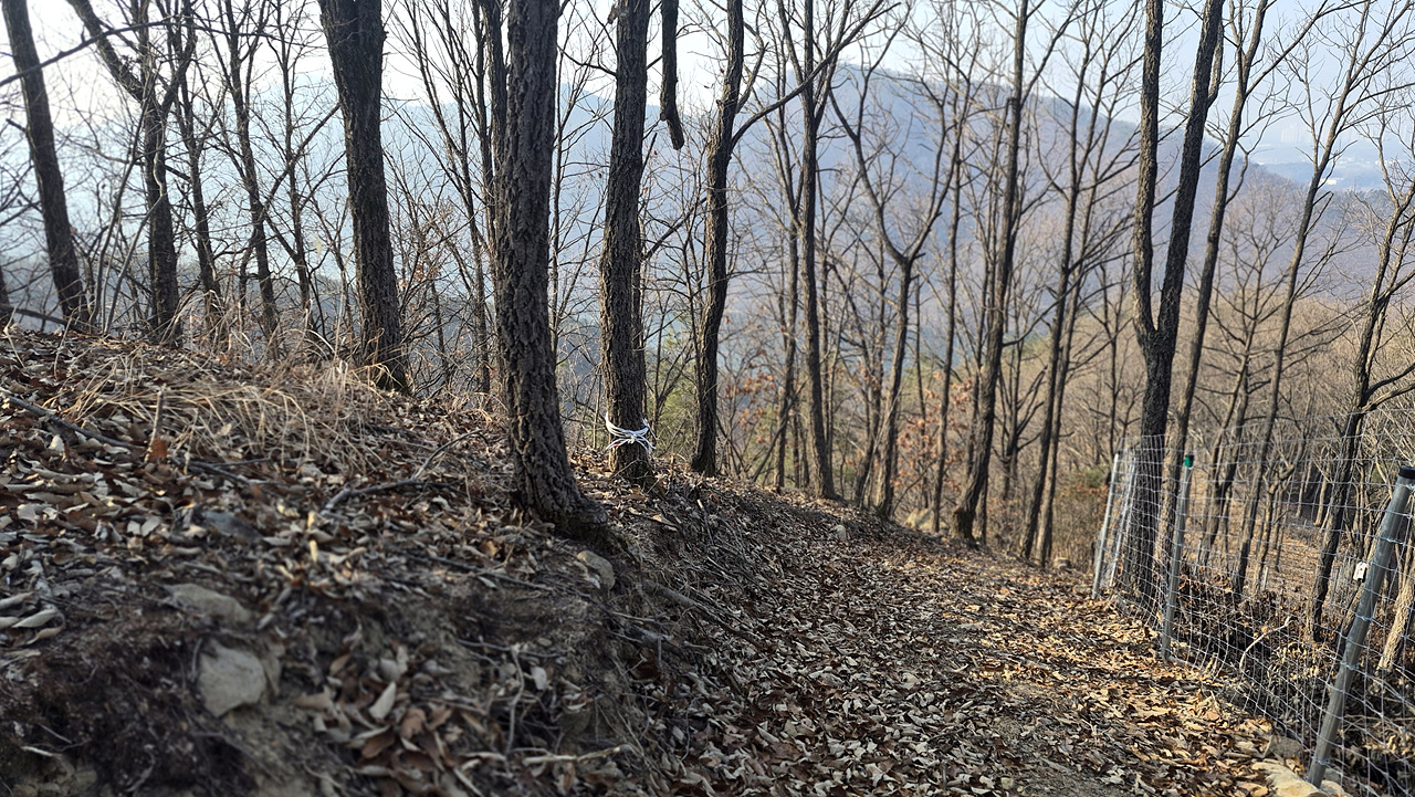 이어 모처럼 소속리산까지 정맥길을 다시 한번 진행할까 하는 생각도 했지만 거리가 상당해 다소 지루한 면이 있으니 적당히 정맥길 따르다가 산허리 임도로 내려서서 백야수목원과 용계저수지 둘레길 경유 원점회귀하는 코스로 결정...