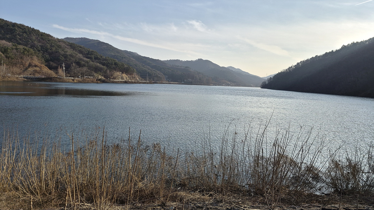 (용계저수지를 감싸고 이어지는 한남금북정맥)