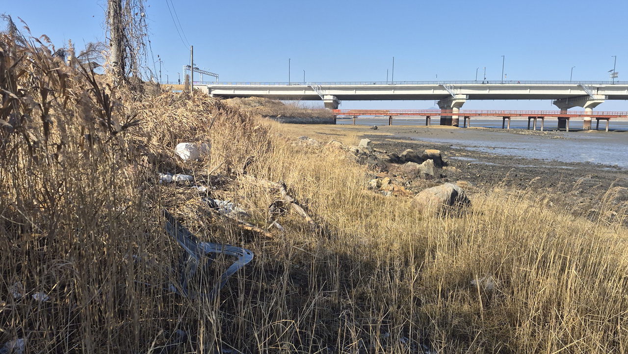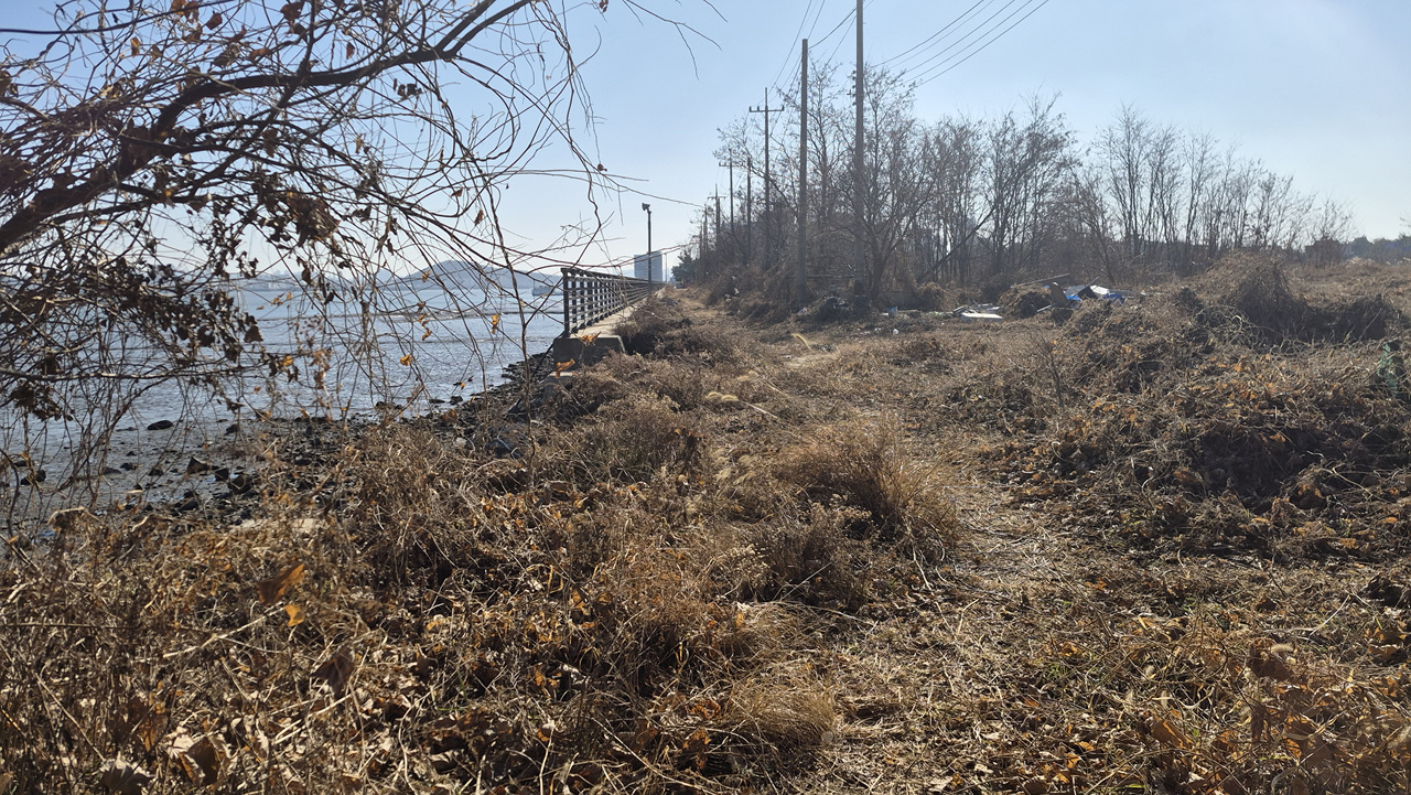(좌측 빽빽한 갈대숲을 헤치고 진행하는 방법밖에 없다)