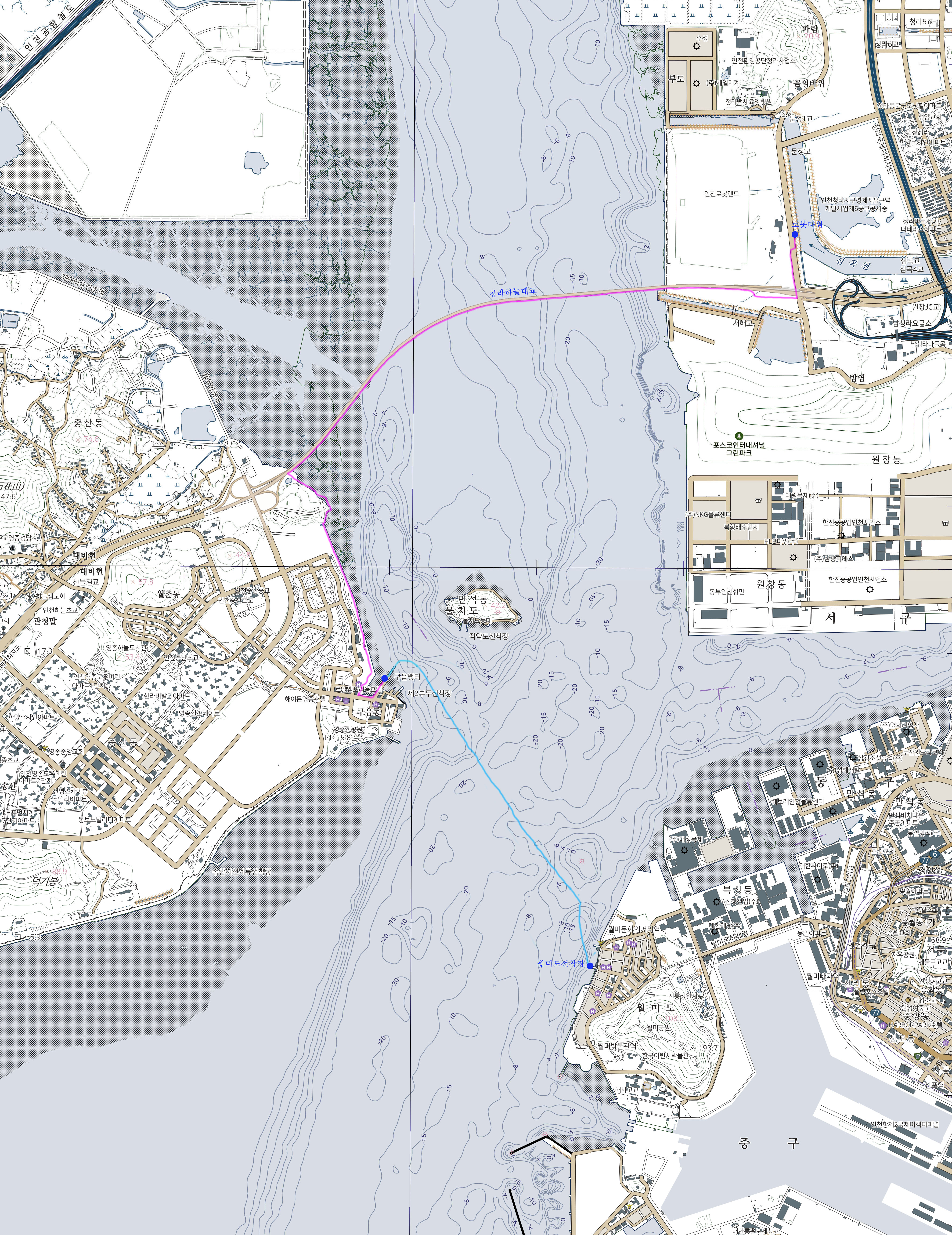 구읍뱃터-영종하늘도시해안-청라하늘대교종점-해상교량전망대-청라하늘대교시점-로봇랜드로-로봇타워
