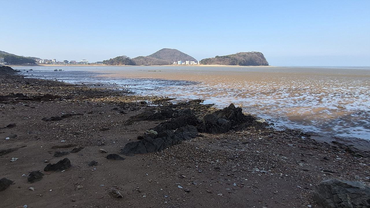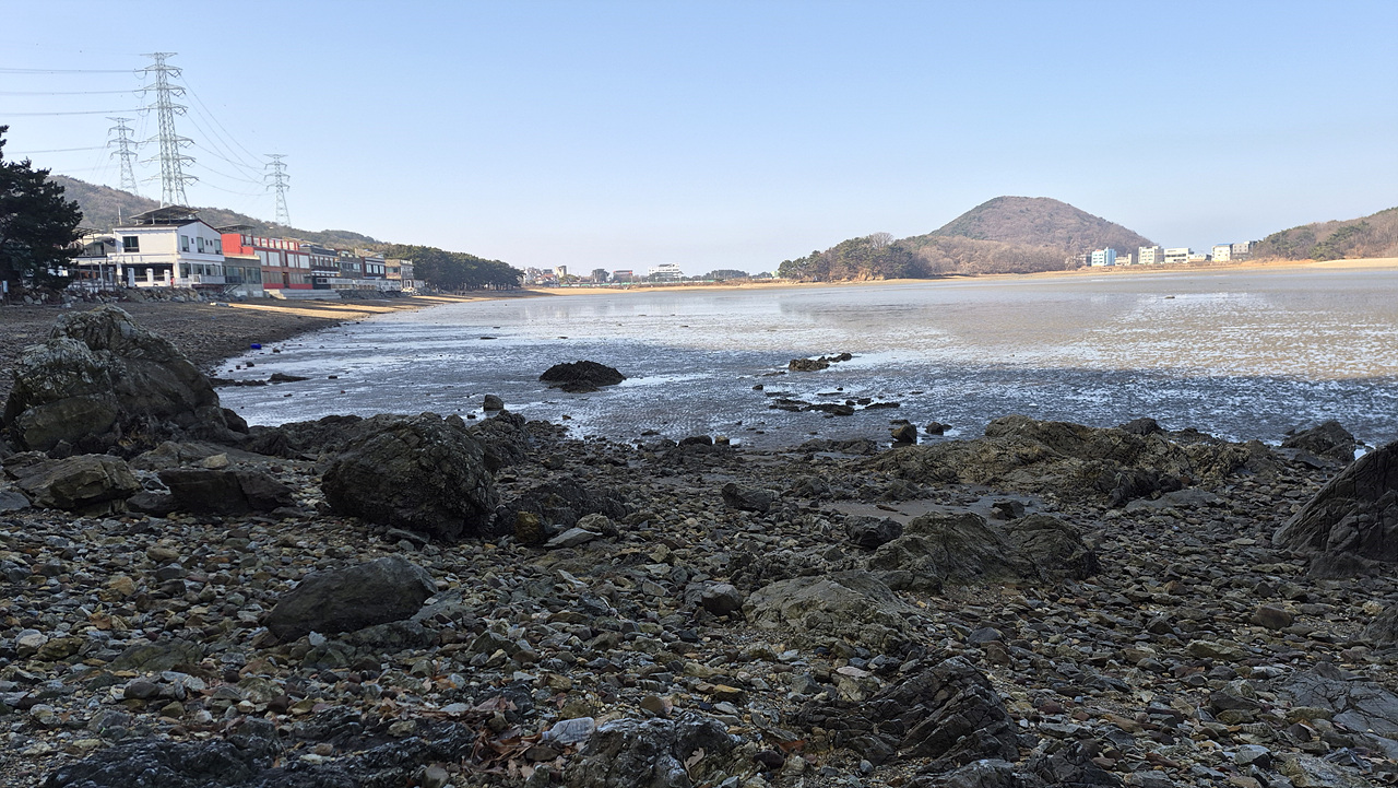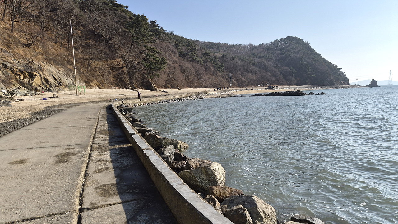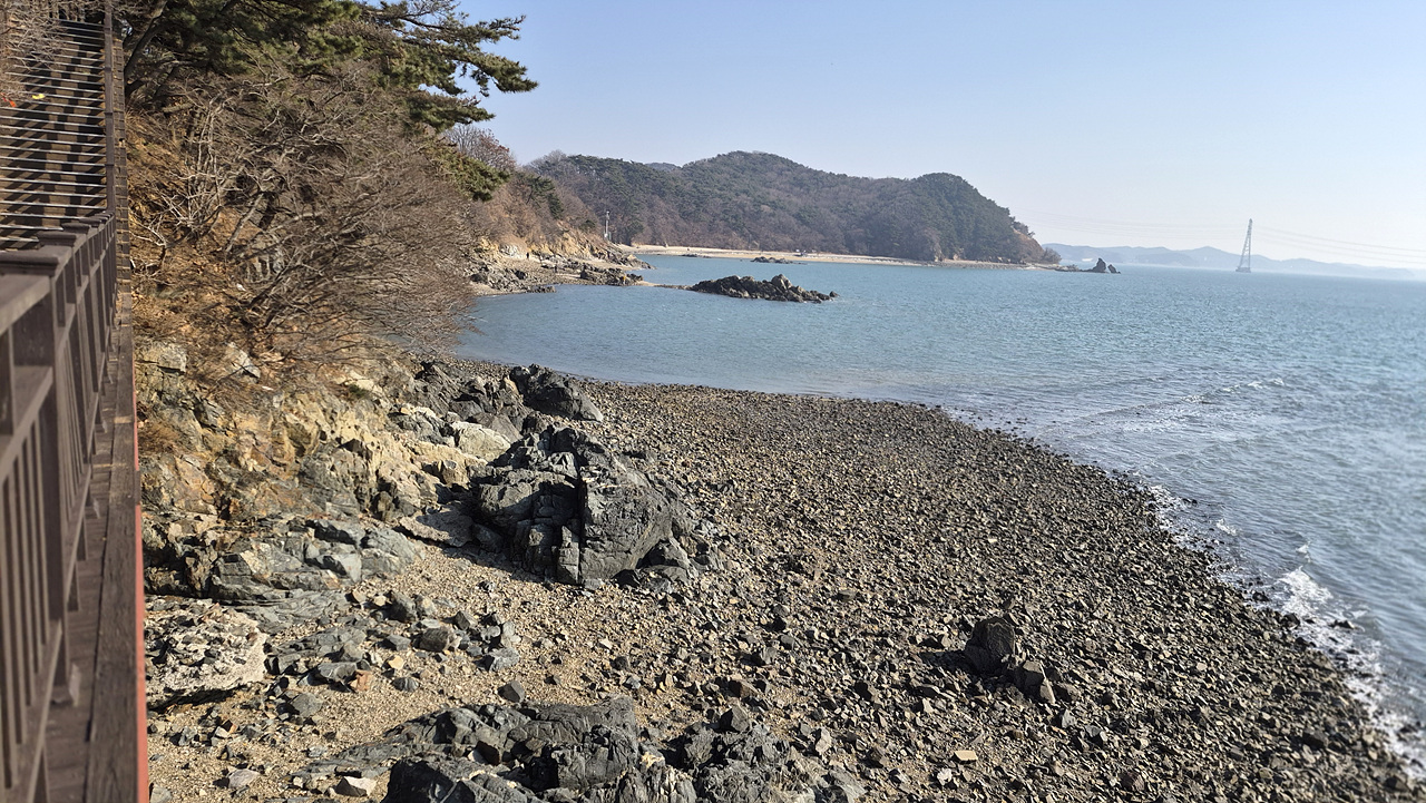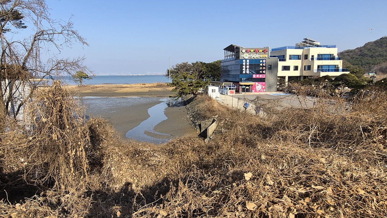 (아까 지나간 해안... 수로 징검다리를 건넌 곳이다)