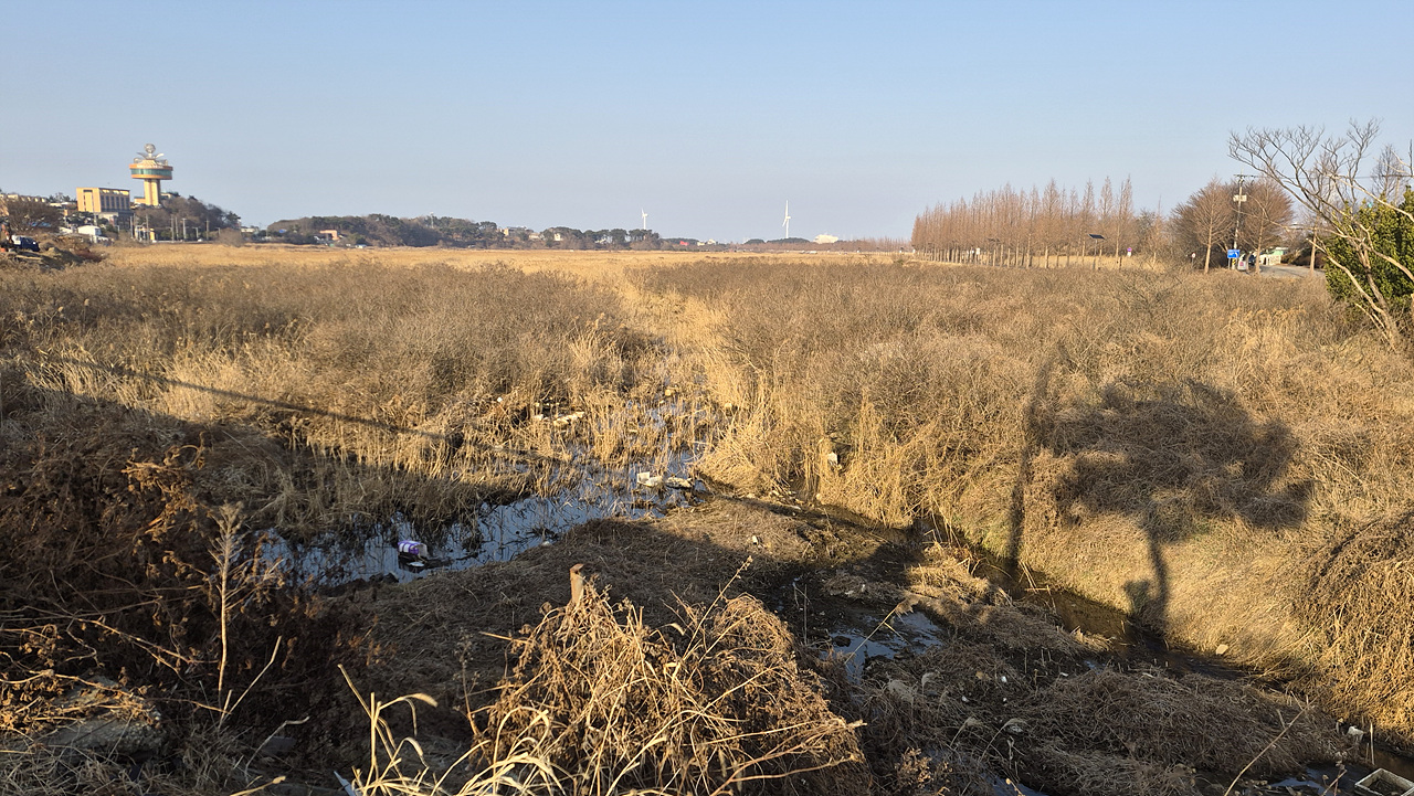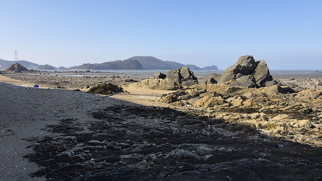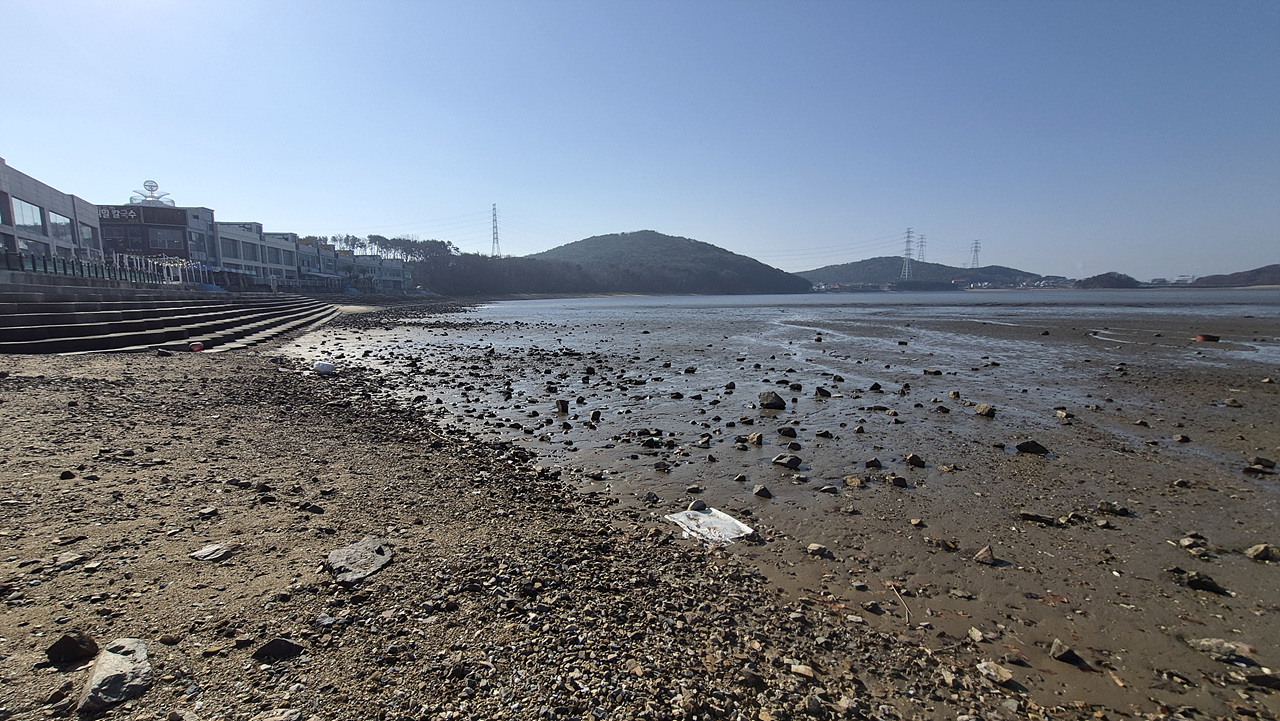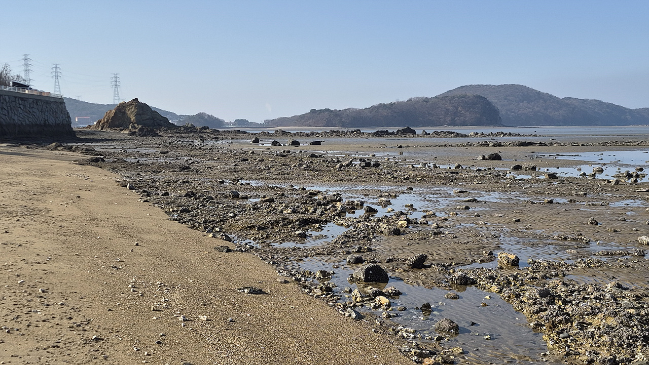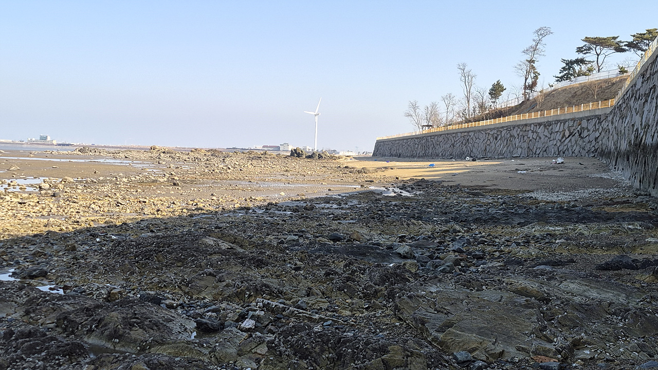 (아까 지나간 해안... 수로 징검다리를 건넌 곳이다)