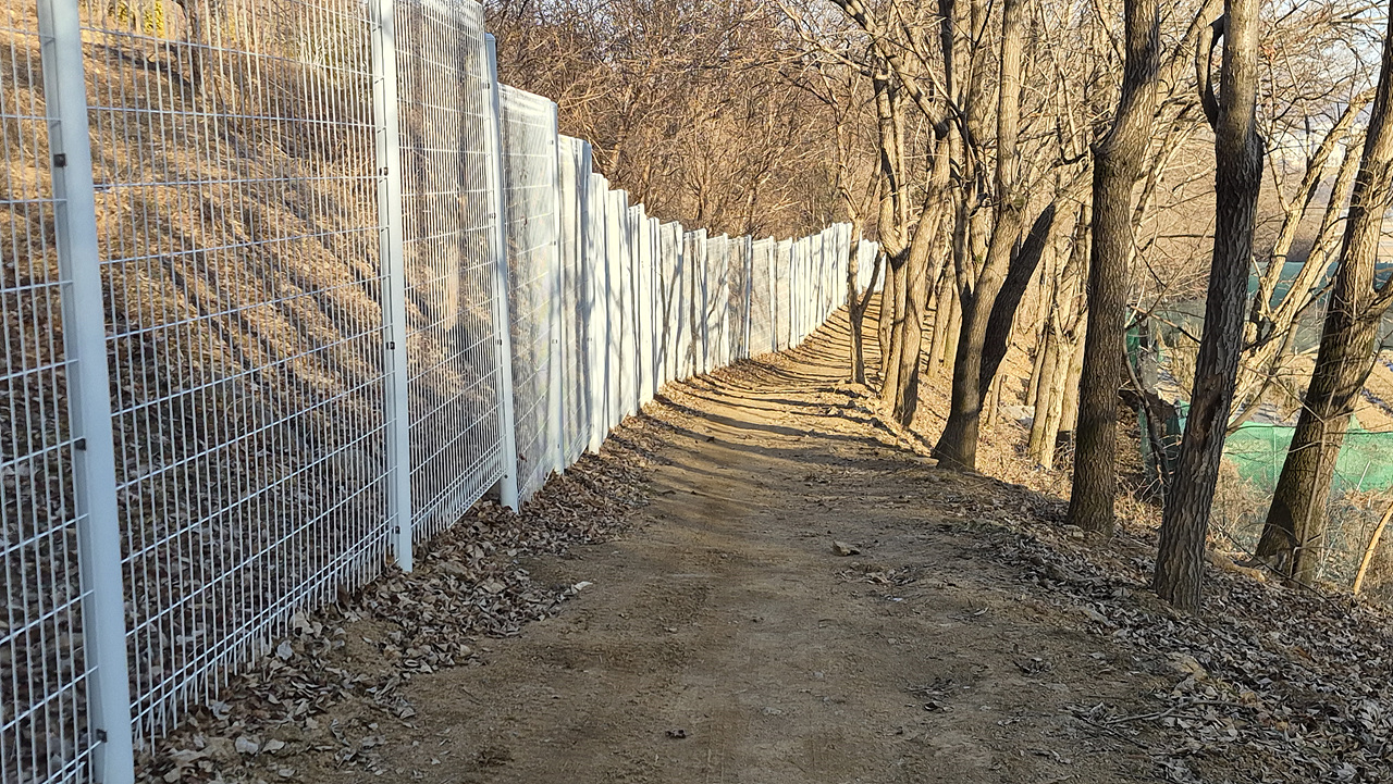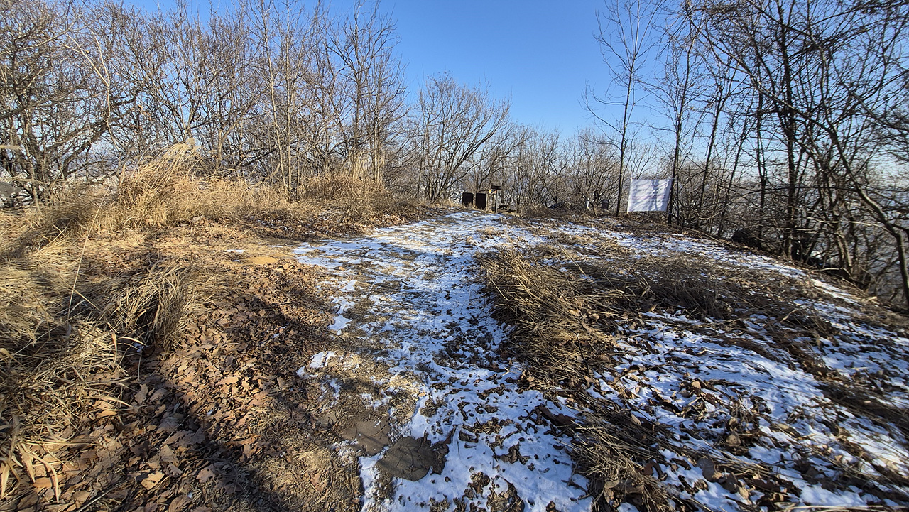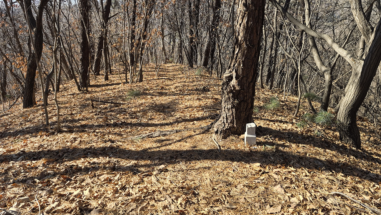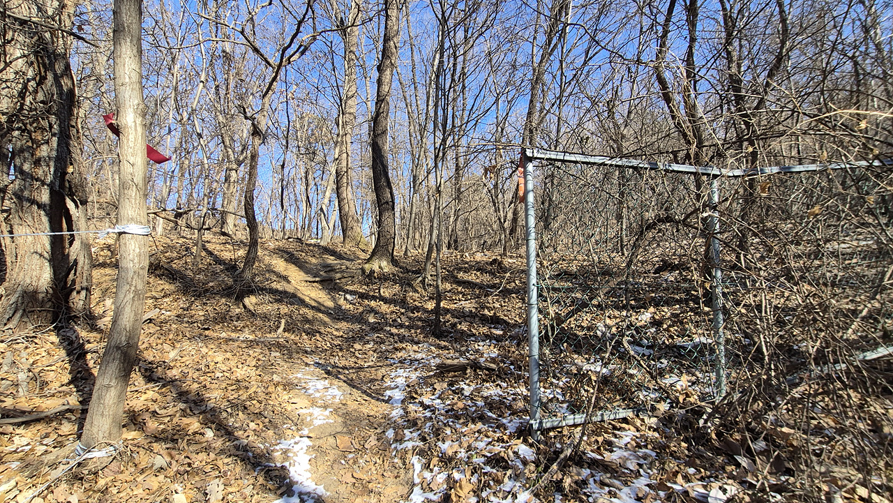 (펜스 앞 표지기 한 장 보일 뿐 별 특징이 없다)