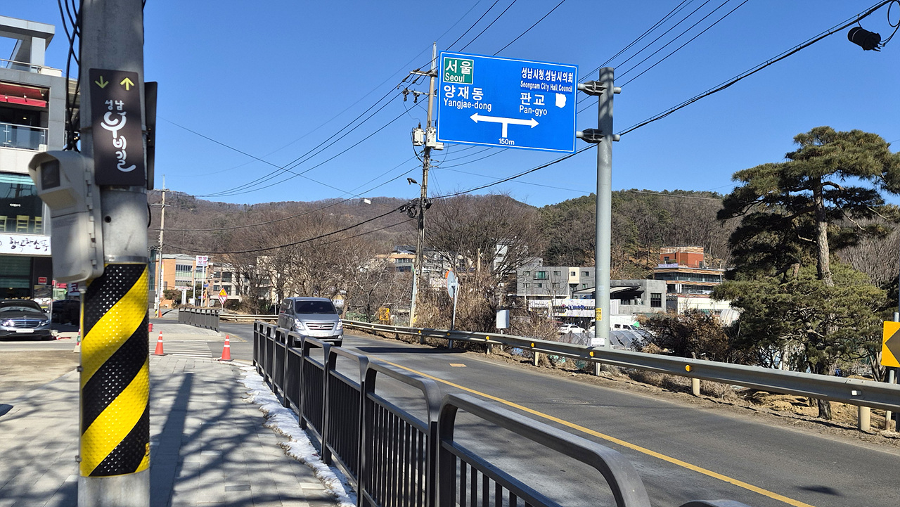 (바로 앞이 달래내로 밸리마을 버스 정거장인데 여기도 주변에 횡단보도가 없으므로 신경써서 건너야 한다)