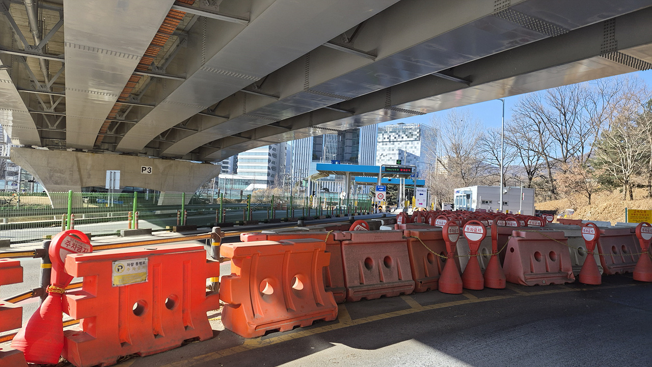 (판교분기점 직전인데 공사중이라며 금줄이 막고 있네)