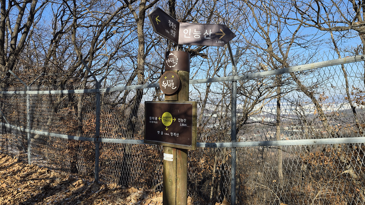 이어 청계산 초입인 옛골까지 능선 천체를 진행하는 것을 우선 목표로 하면서 옛골에서 마무리하기에는 거리가 다소 짧은 면이 있으니 인릉산 방향으로 성남누비길을 적당히 진행하다가 내려서는 것으로... 목동산 정도 생각했는데 진행하다 보니 인능산까지 찍고 안 가본 심곡동으로 하산했다.