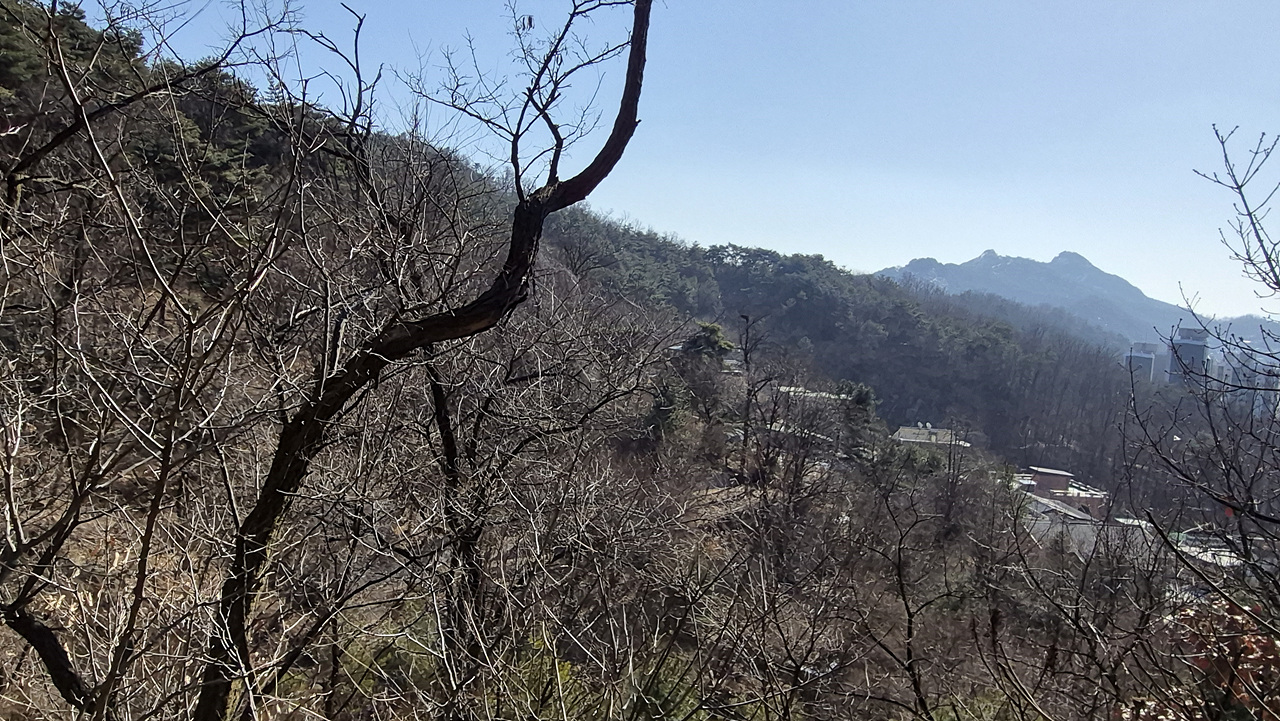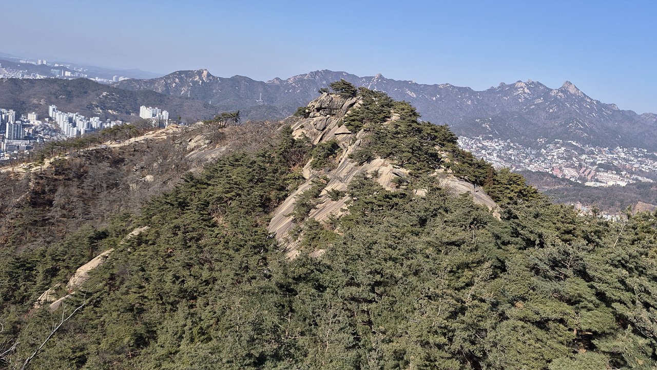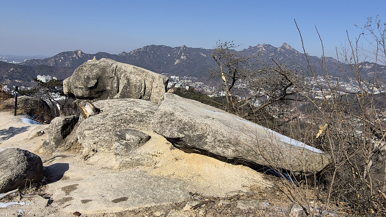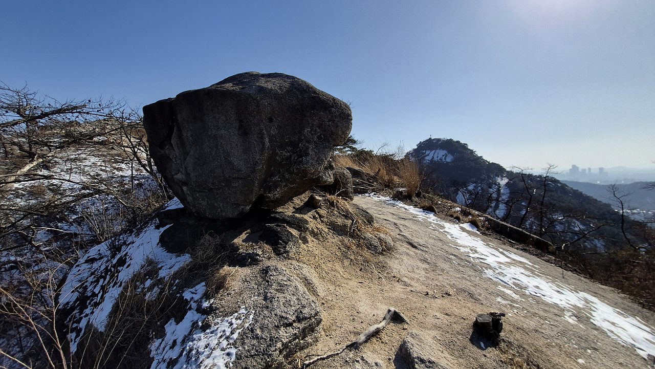 -개미마을갈림(14:07)-기차바위(14:13)-한양도성길(14:19)-인왕산(14:29~49)-범바위(15:06)-둘레길안부(15:23)