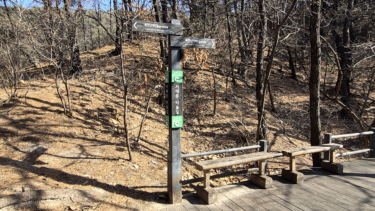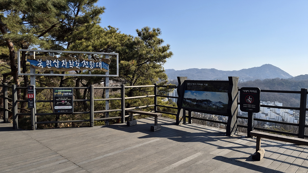 북한산 탕춘대성능선-산골고개 사이 남쪽 산허리에 조성된 북한산자락길이 미답인 바 인왕산과 연계하기로 하고 나선 여정... 북한산자락길은 그저 편안한 허리길이려니 생각했는데 전체가 무장애나눔길로 조성된 그야말로 웰빙 숲길이다.