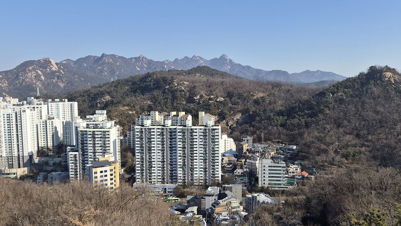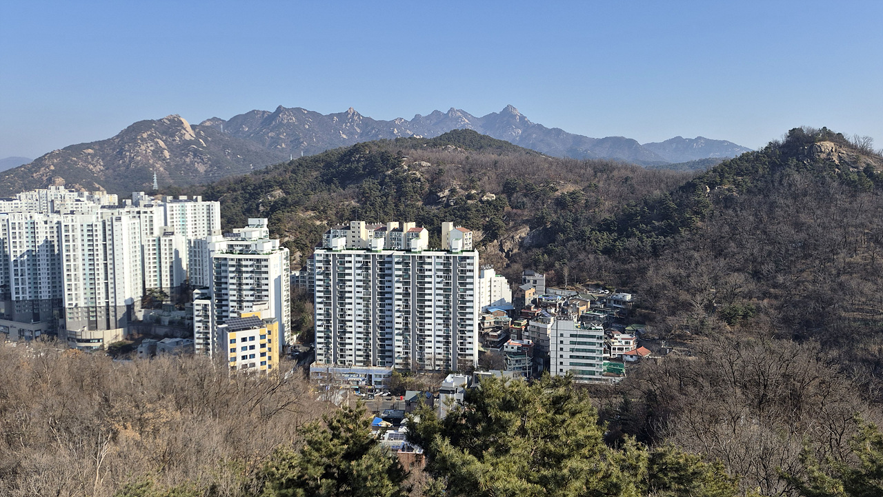 (족두리봉 부터 형제봉까지 북한산 주능선과 우측 북악산)