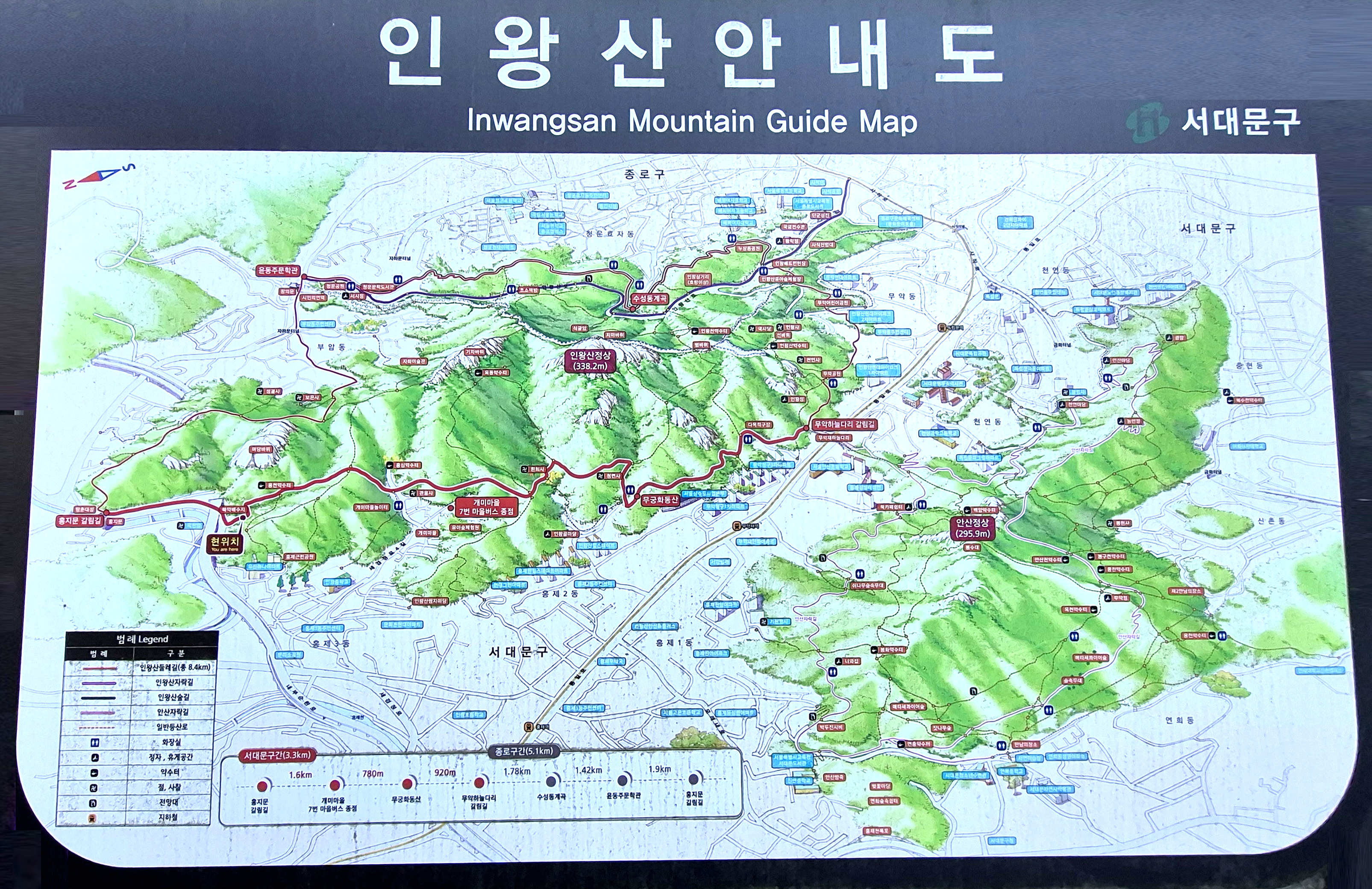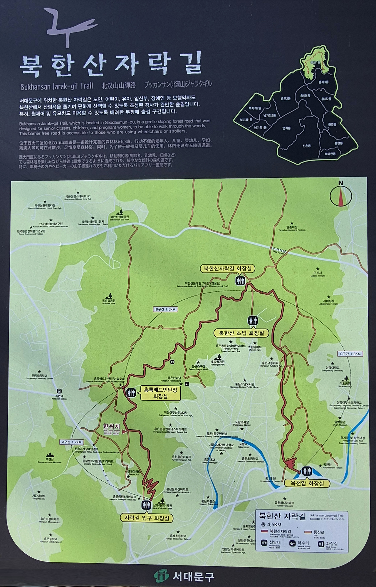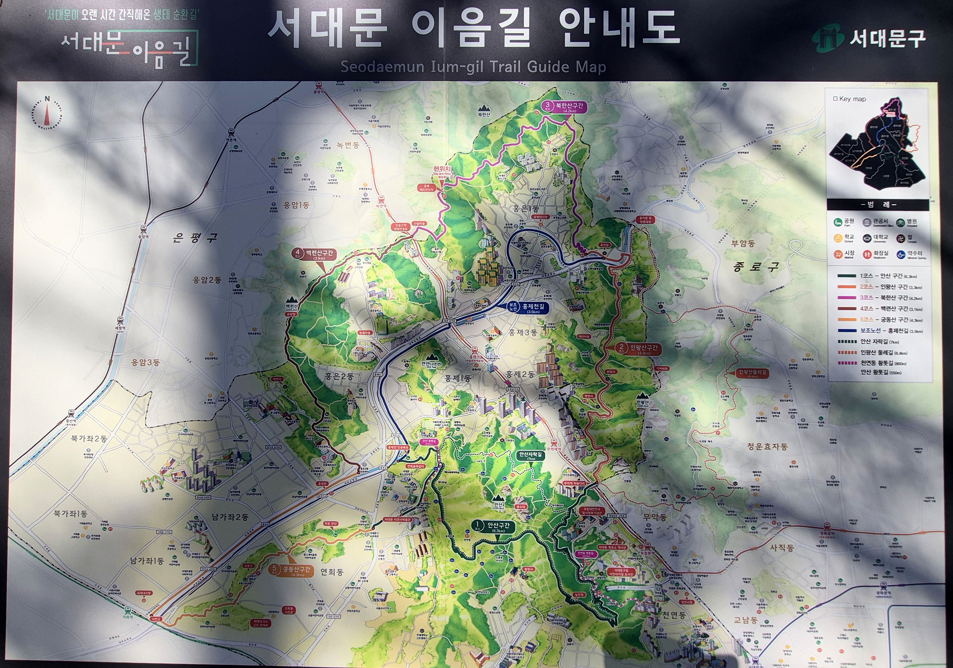 (안산둘레길-인왕산둘레길-북한산자락길-백련산둘레길-궁동산길로 이어지는 산책로를 서대문이음길이라고 한다)