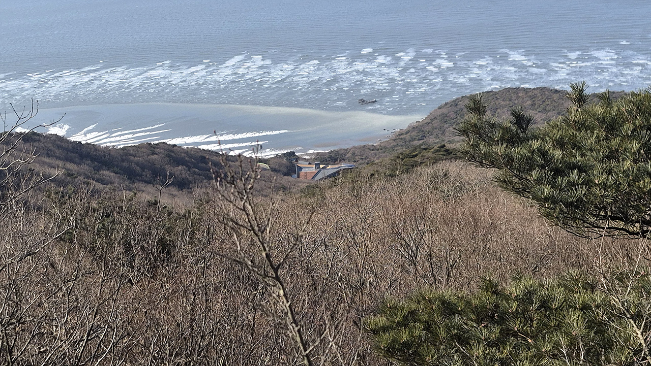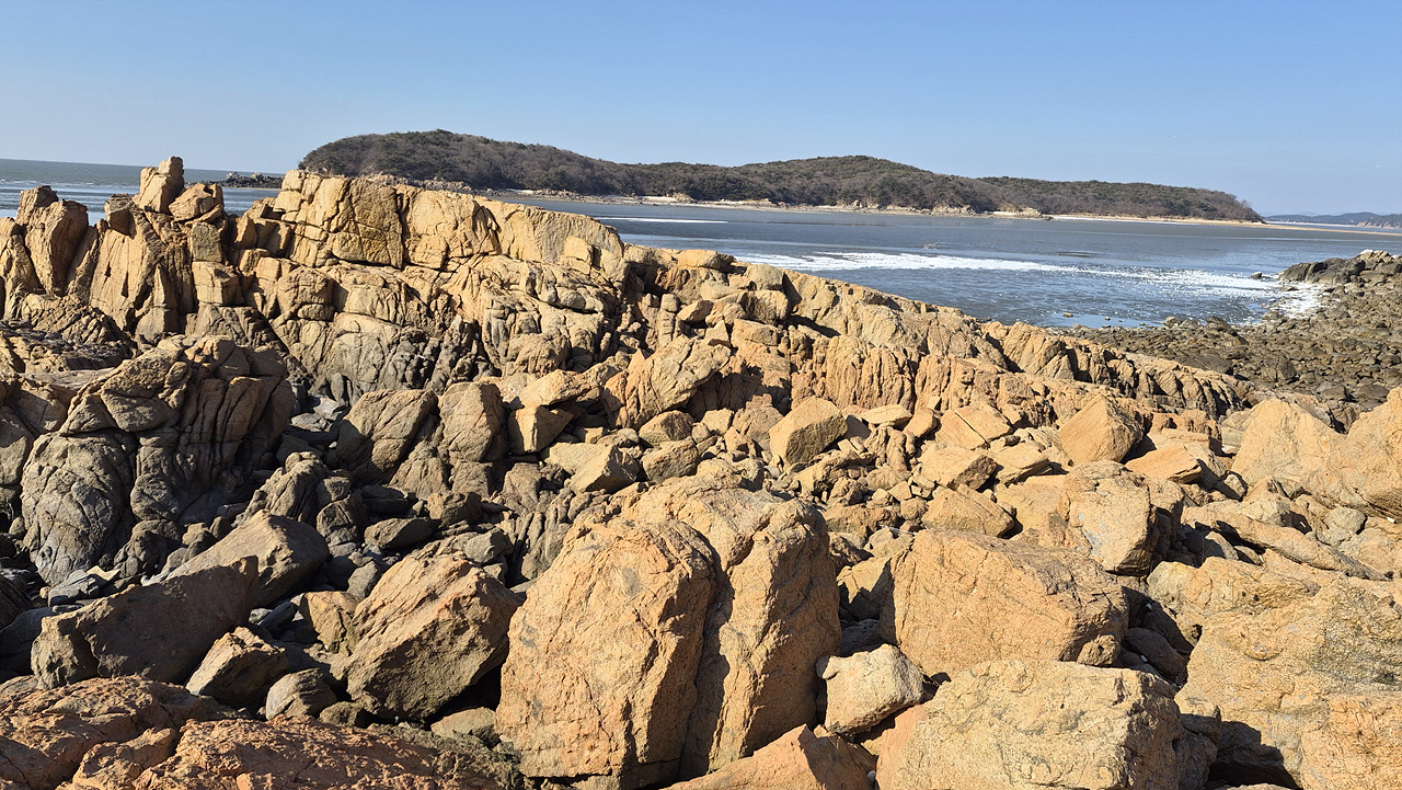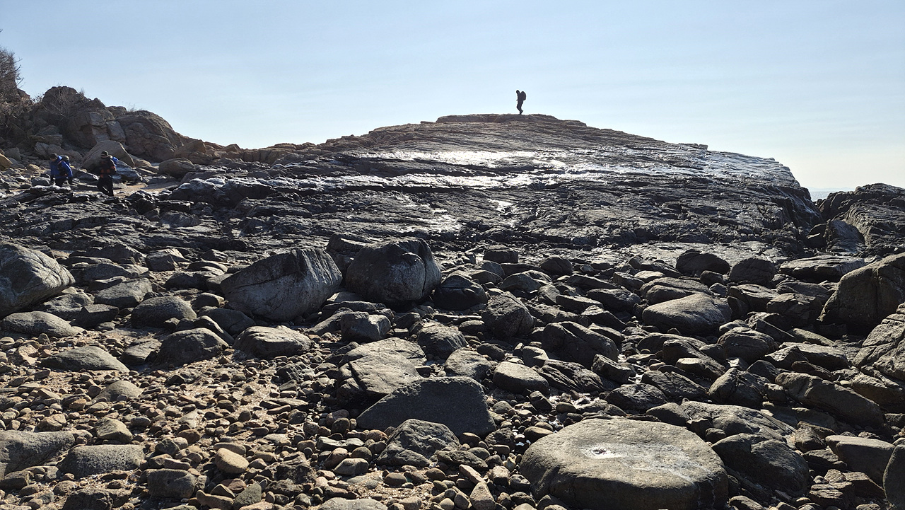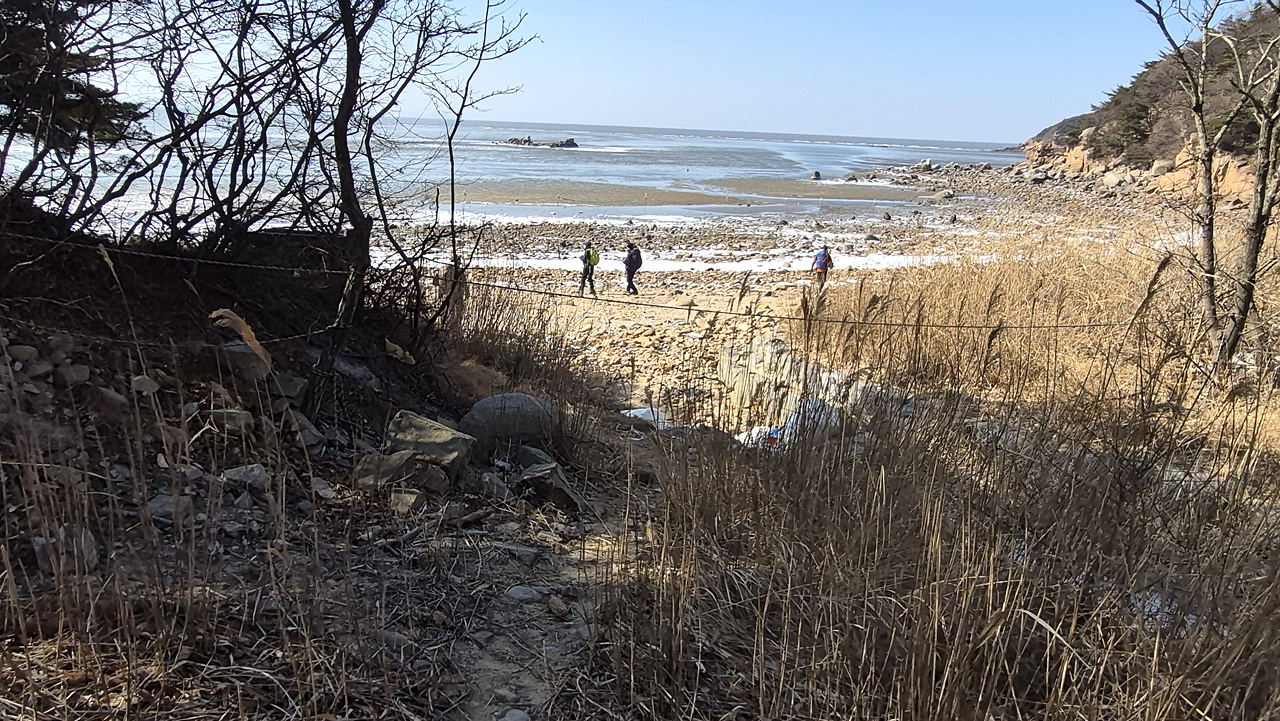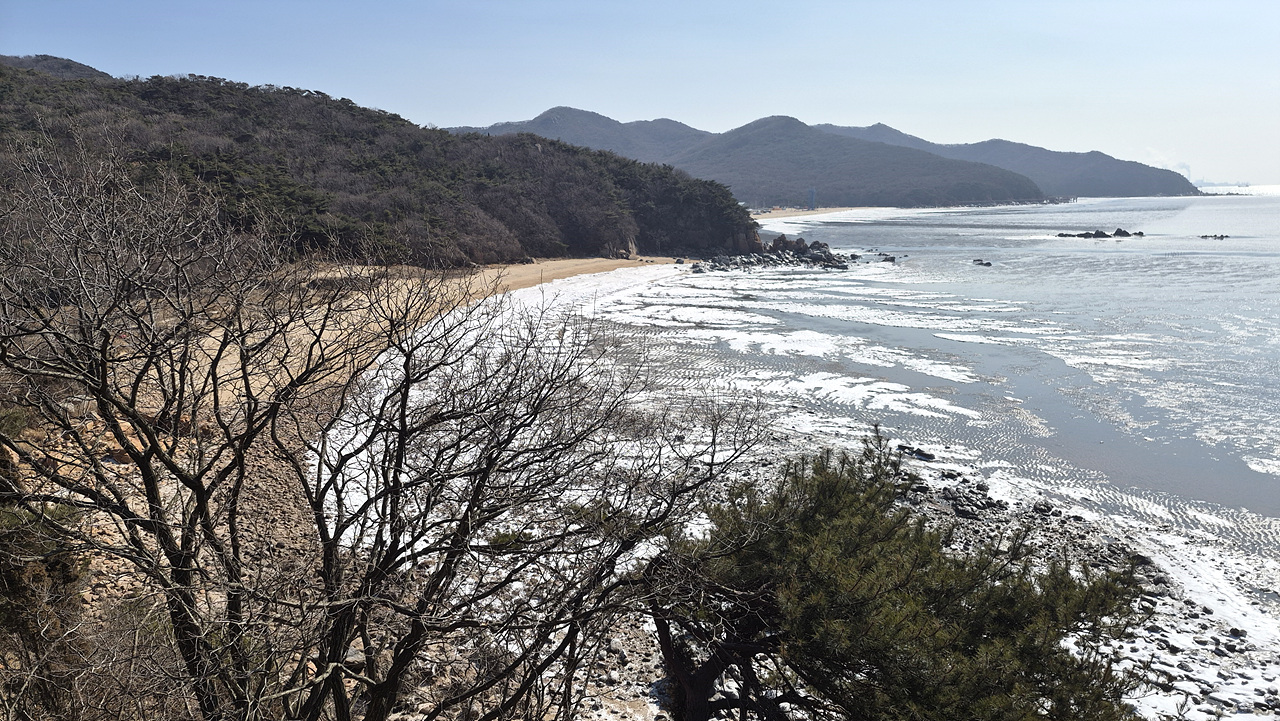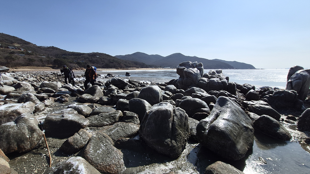 다행히 현지 도착하니 예보와는 달리 그렇게 심한 바람은 없었고 한낮으로 들어서면서 기온도 많이 올라가 오히려 산행하기 딱 좋은 날이었다는 평... 그래도 해안바위들이 빙벽을 이루면서 바다까지 얼음으로 뒤덮여 있었으니 몇일 동안 춥긴 추웠던 모양이다.