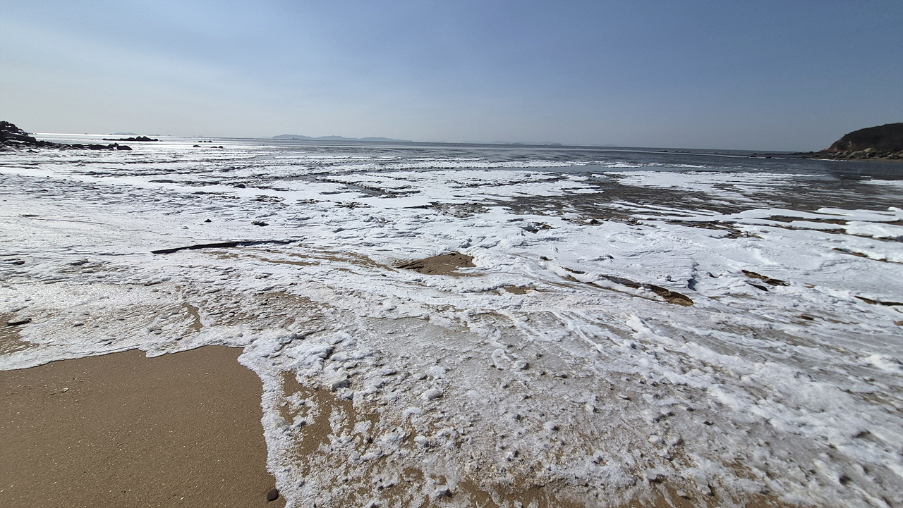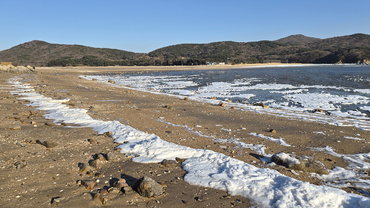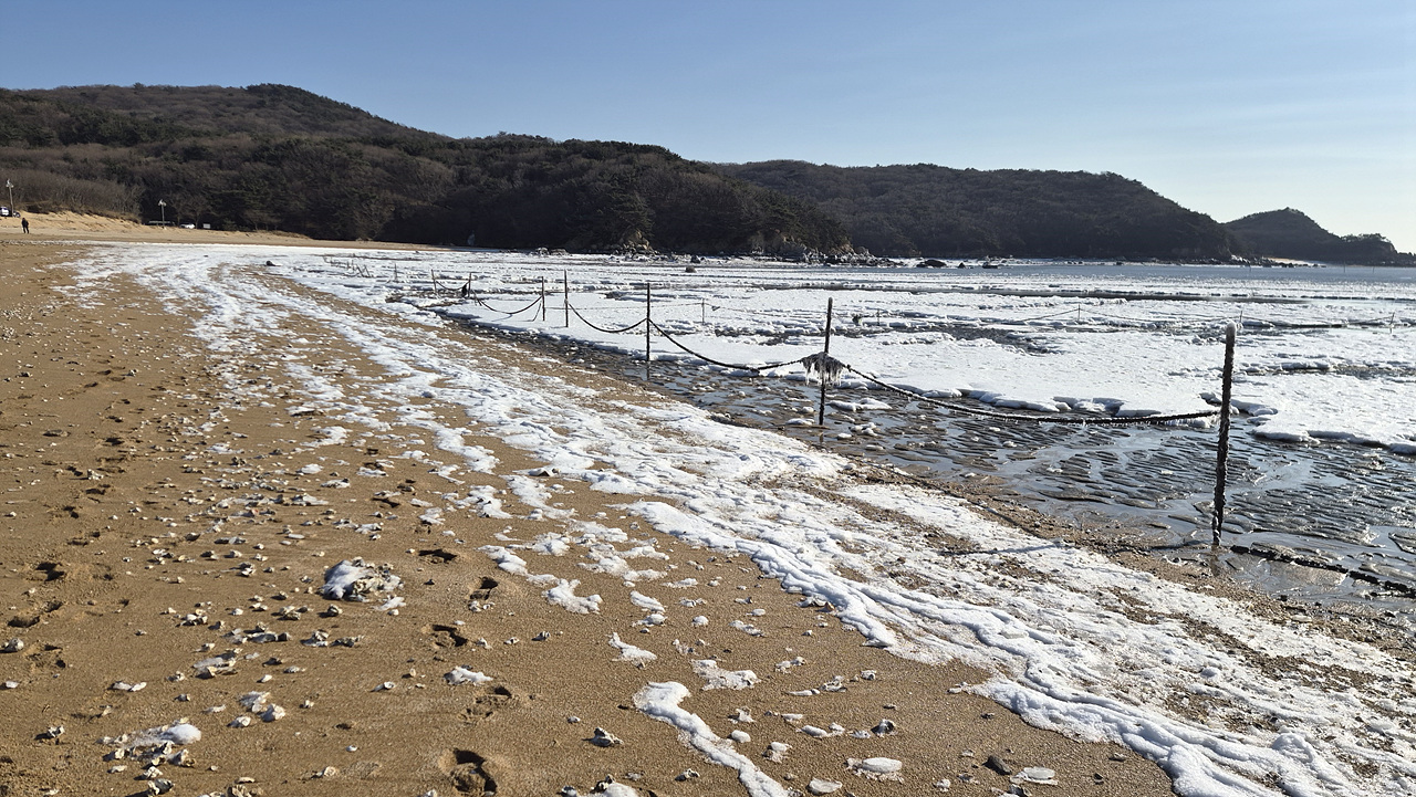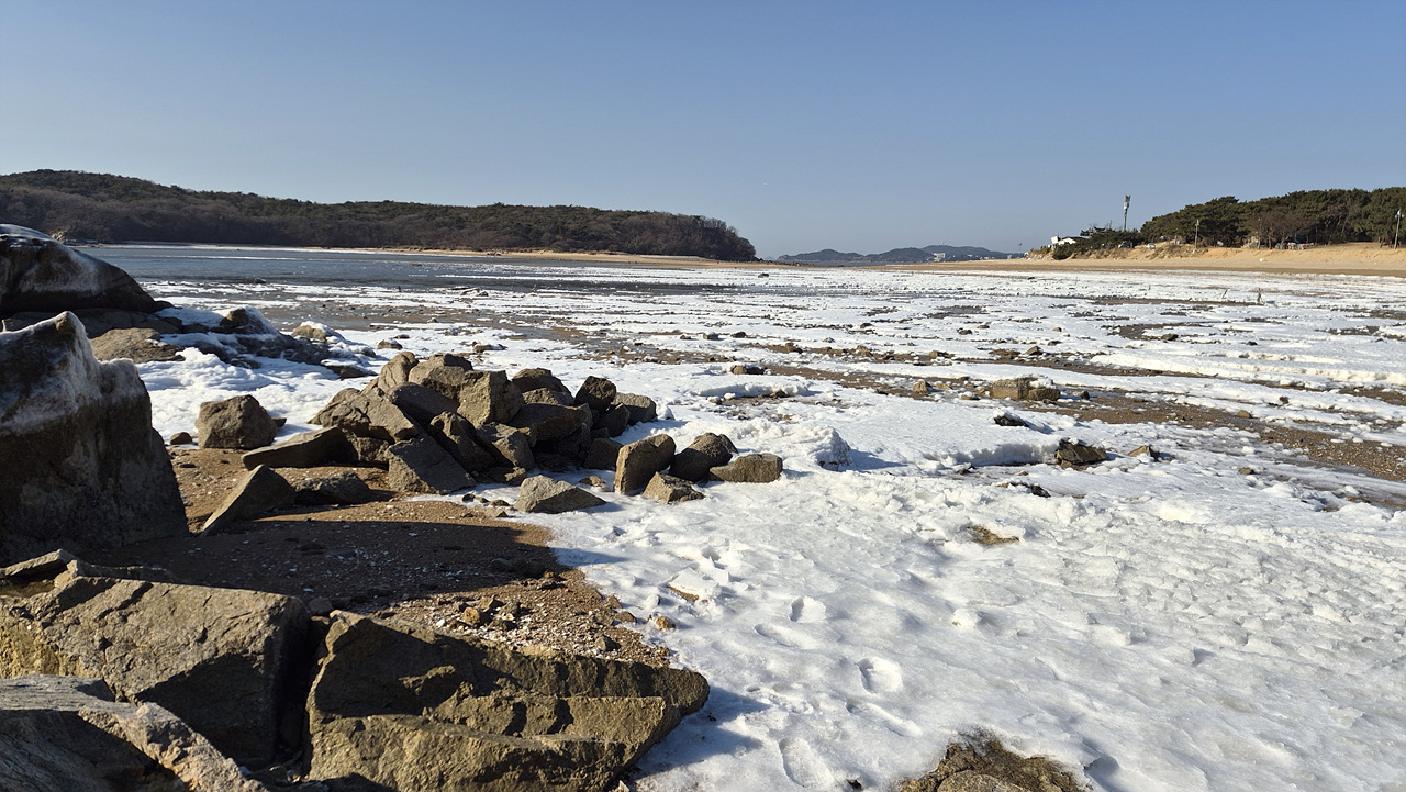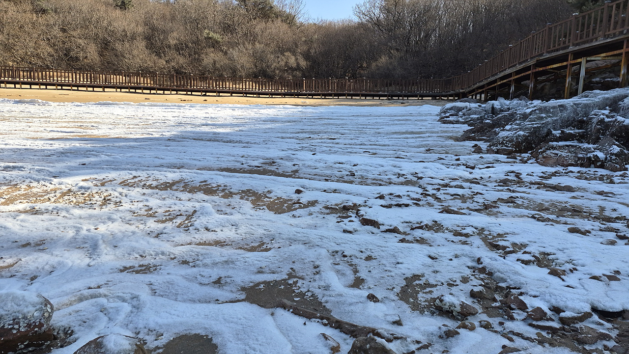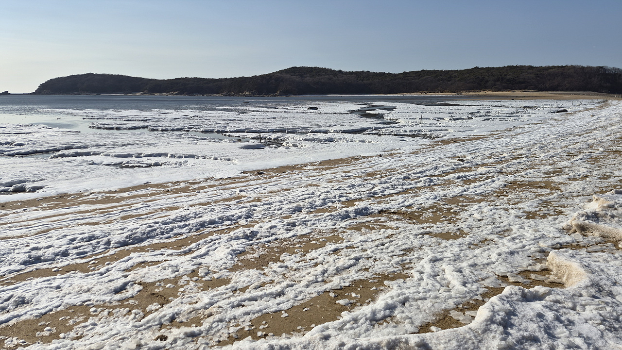 (눈이 아니라 밀려온 파도가 얼어붙은 상태로 남아있는 것이다)