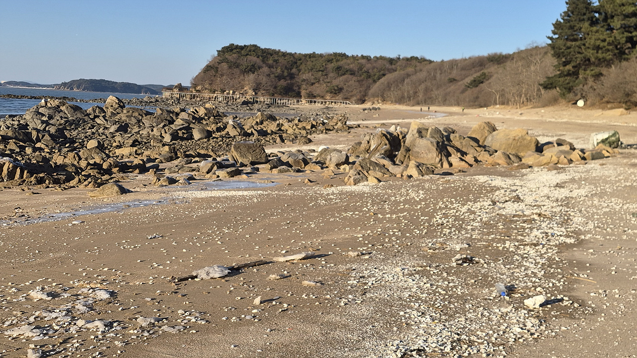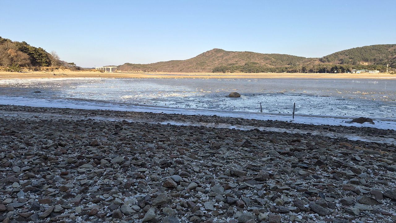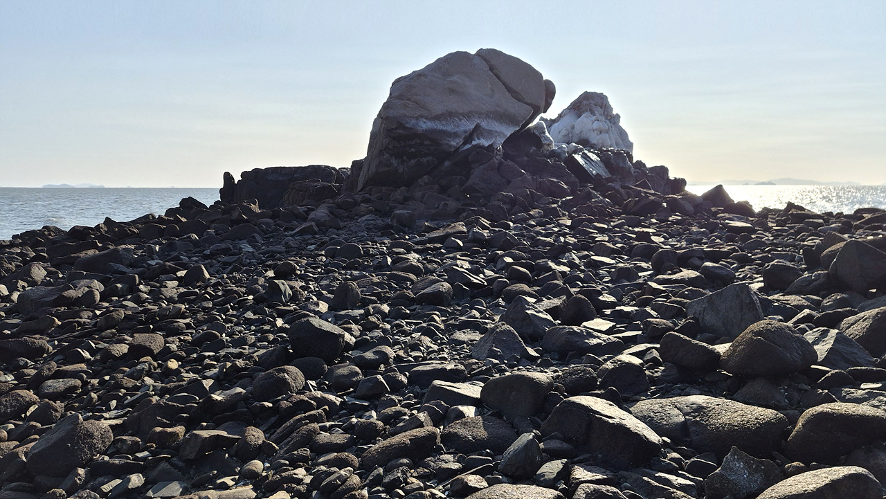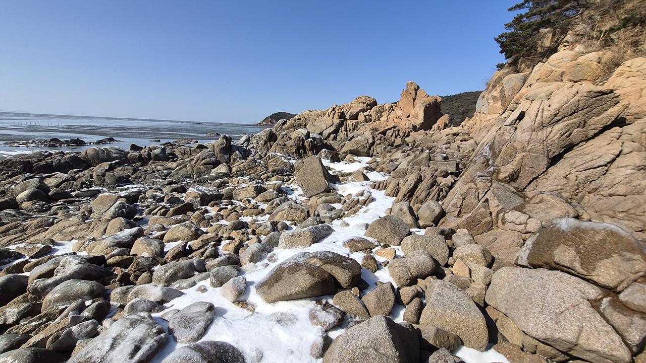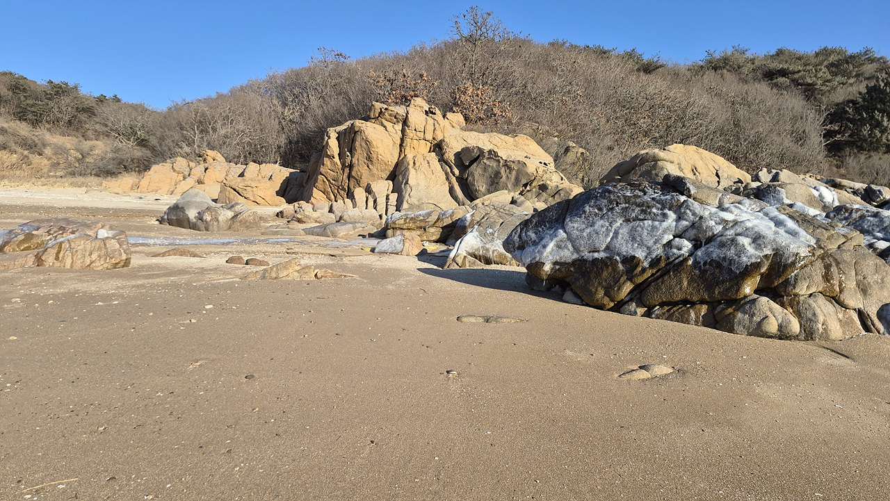 (그런데 날씨가 얼마나 추웠는지 해안 바위들이 다 얼어 빙벽을 이룬 상태)