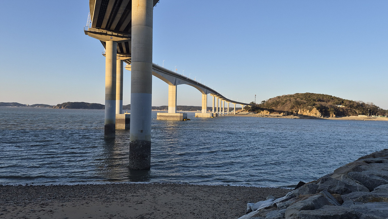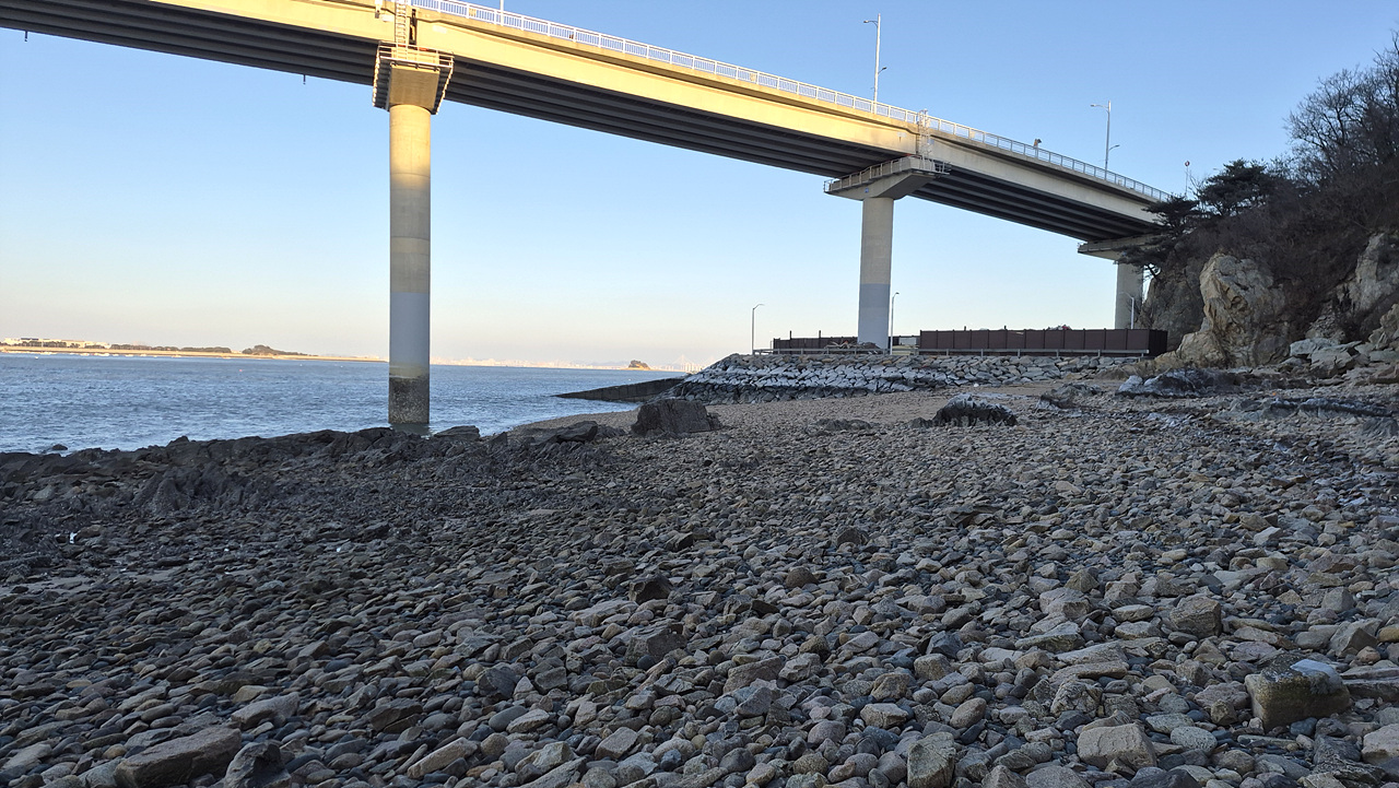 (물이 바로 앞까지 들어왔지만 무의대교까지 별로 먼 거리가 이니기에 해안으로 진행해도 충분한 시간이다)