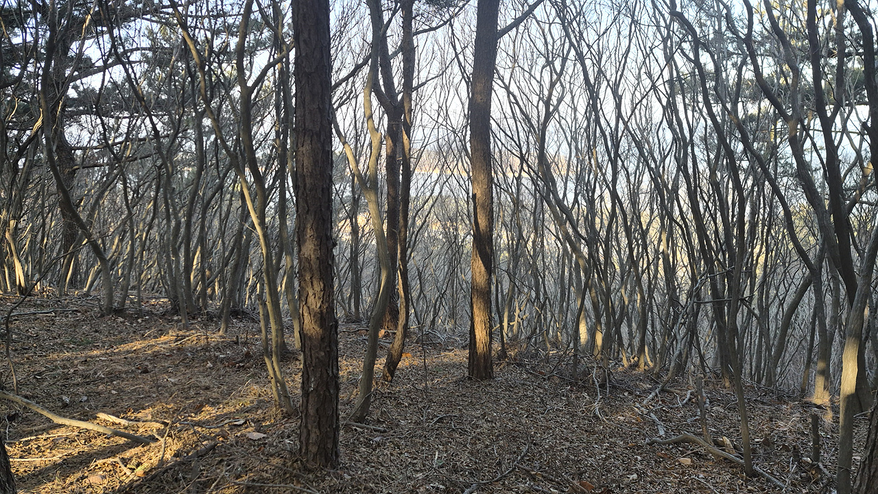 (조금 빽을 한 지점에서 자연휴양림쪽으로 하산한다)