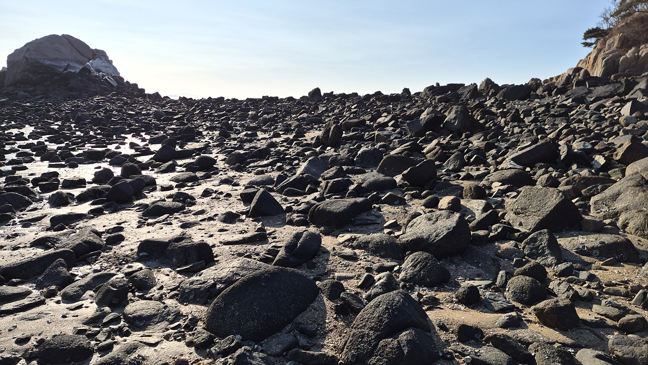 (동쪽해안과는 전혀 다른 바위와 돌덩이로 이루어져 상당한 시간이 소요된다)