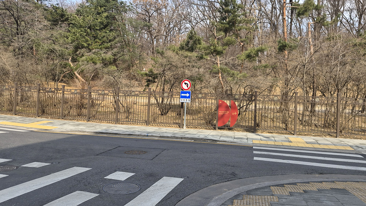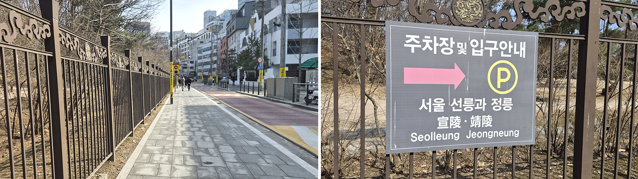 (테헤란로 63번길 가로지르면 선정릉 울타리가 나온다)