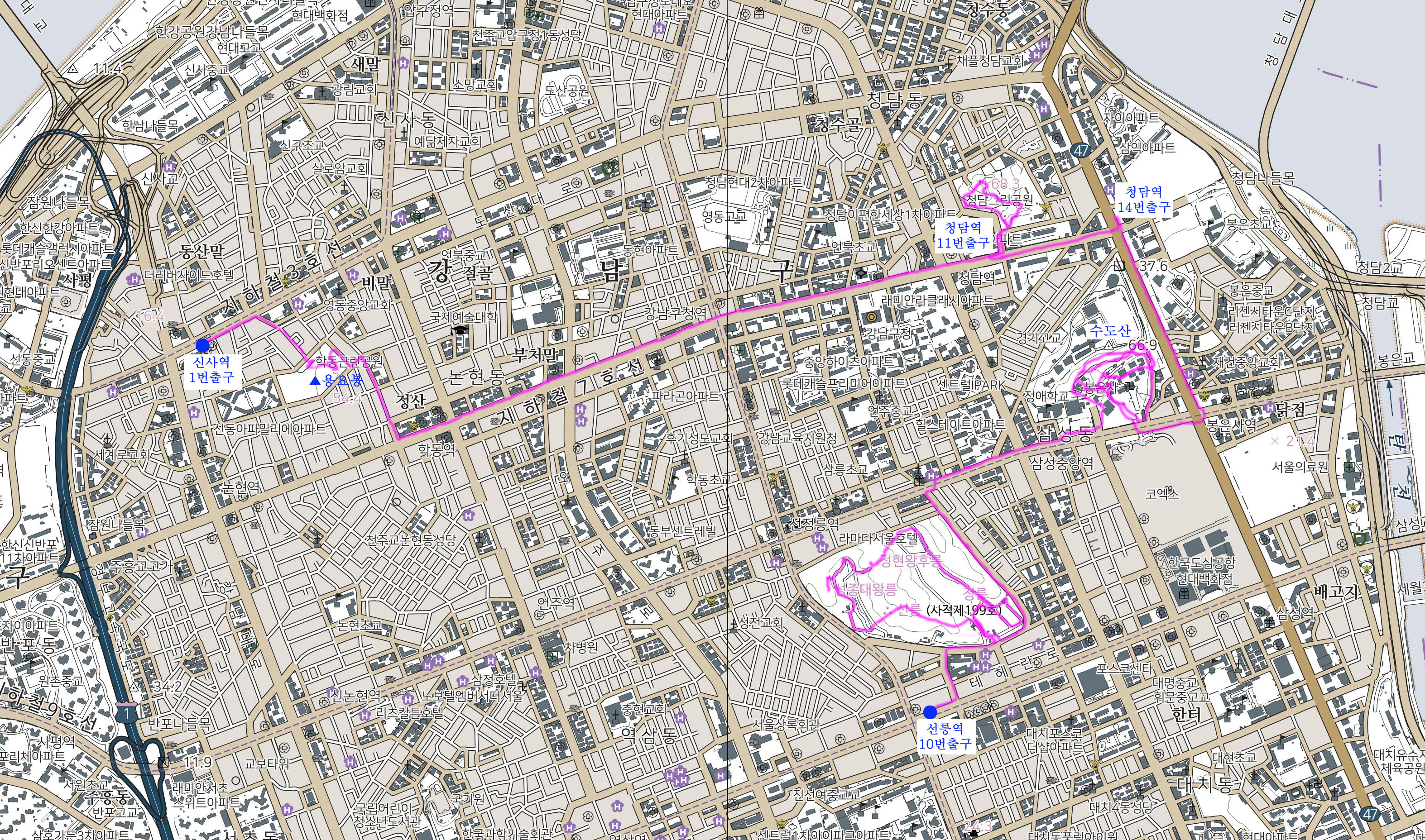 -학동근린공원-용요봉(×80.3)아래-신사역