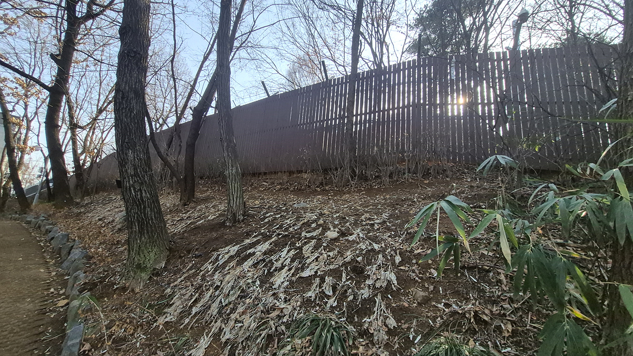 (바로 위가 수도산 정상인데 울타리 넘어 경기고등학교 안이라 여기서는 갈 방법이 없다)