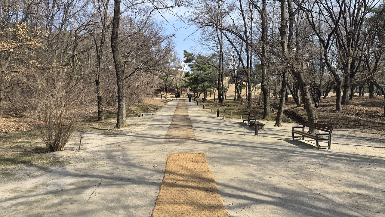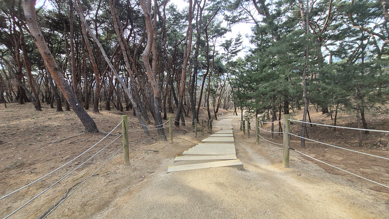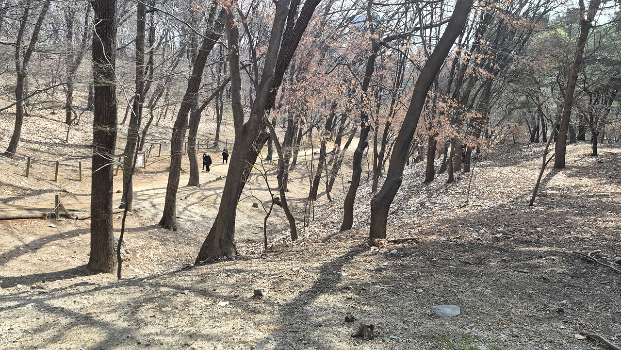 (선릉 먼저 들리기로 하고 좌측 능선길로 들어선다. 맨발 보행은 금지)