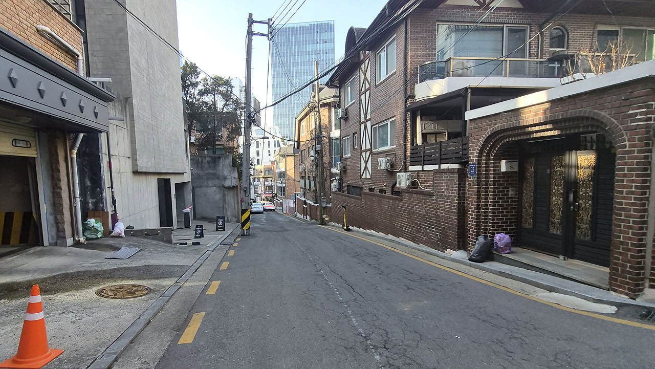 (경기고앞 사거리에서 영동대로 벗어나 좌측 학동로 방향으로... 한강변을 포기했으니 중간에 위치한 청담근린공원이나 들려가기로 한다)