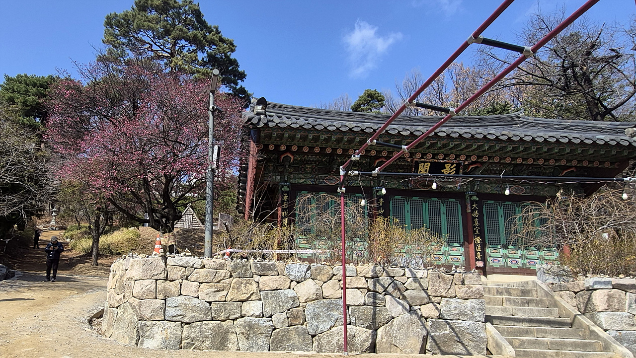 (홍매화가 어느 덧 꽃망을을 터트렸다)