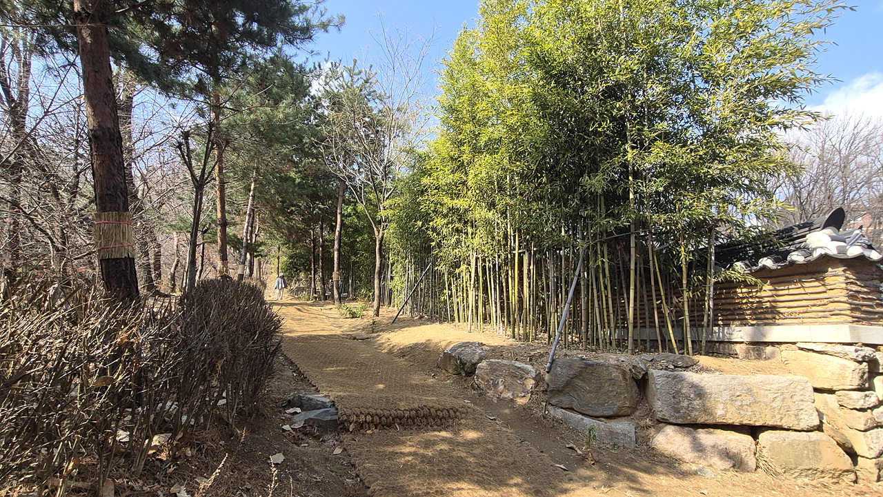 (막다른 골목으로 바뀌면서 계단이 나오고 계단 올라섰더니 다시 봉은사 명상길이네)