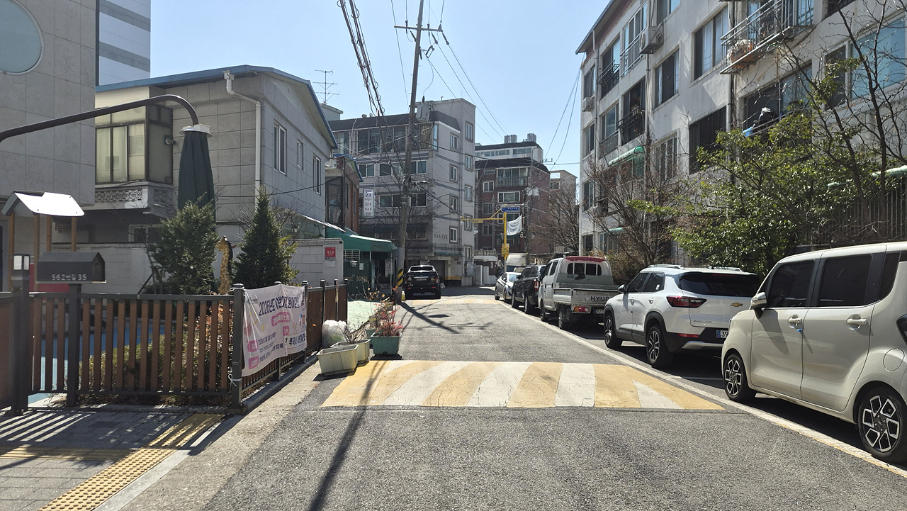 (42번국도 수인로에서 횡단보도 건너 직진길로 잠깐 들어섰다가 진행하려는 방향으로 길이 끊겨 되돌아 나온 뒤)