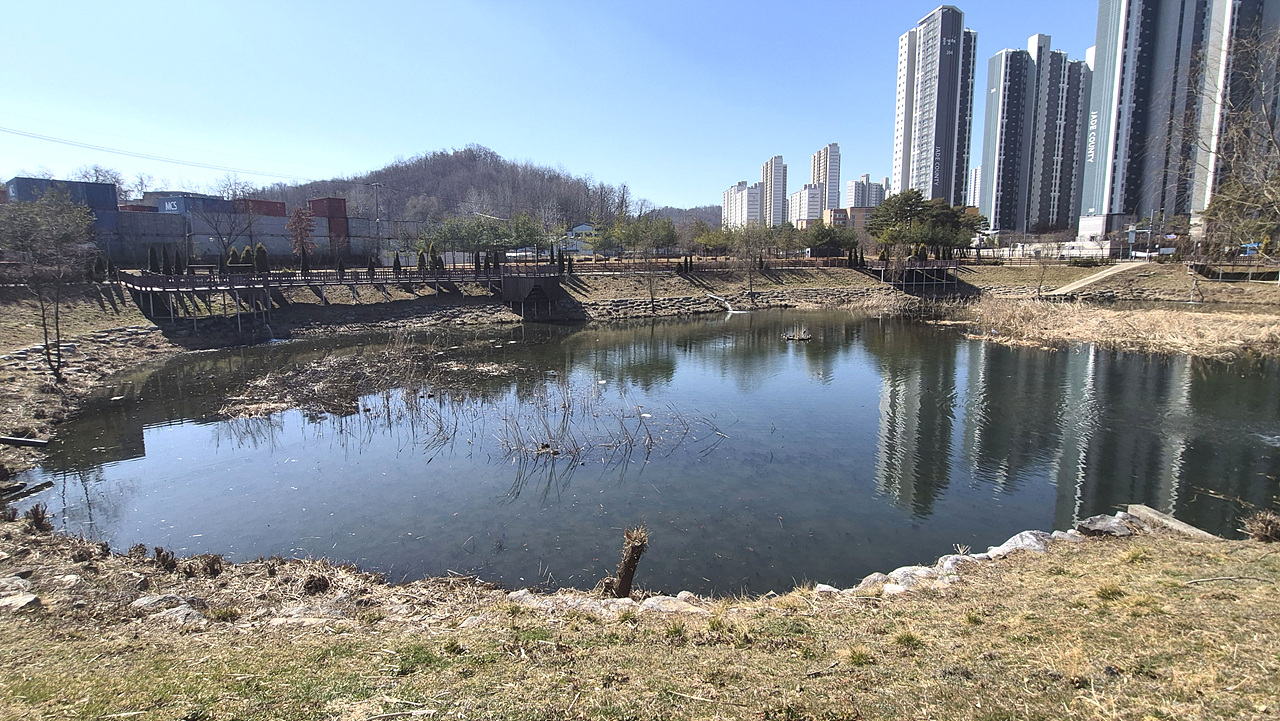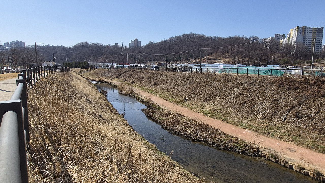 (마유로 건너면 경기둘레길이 지나가는 은행천)