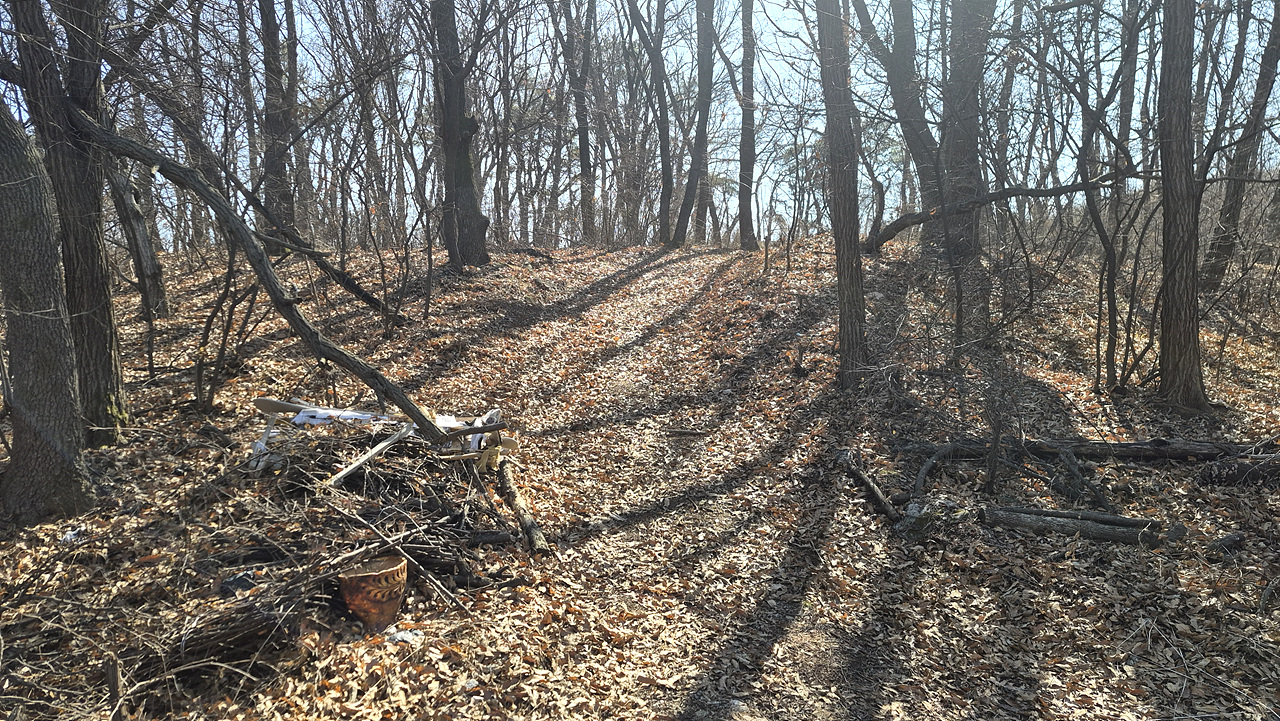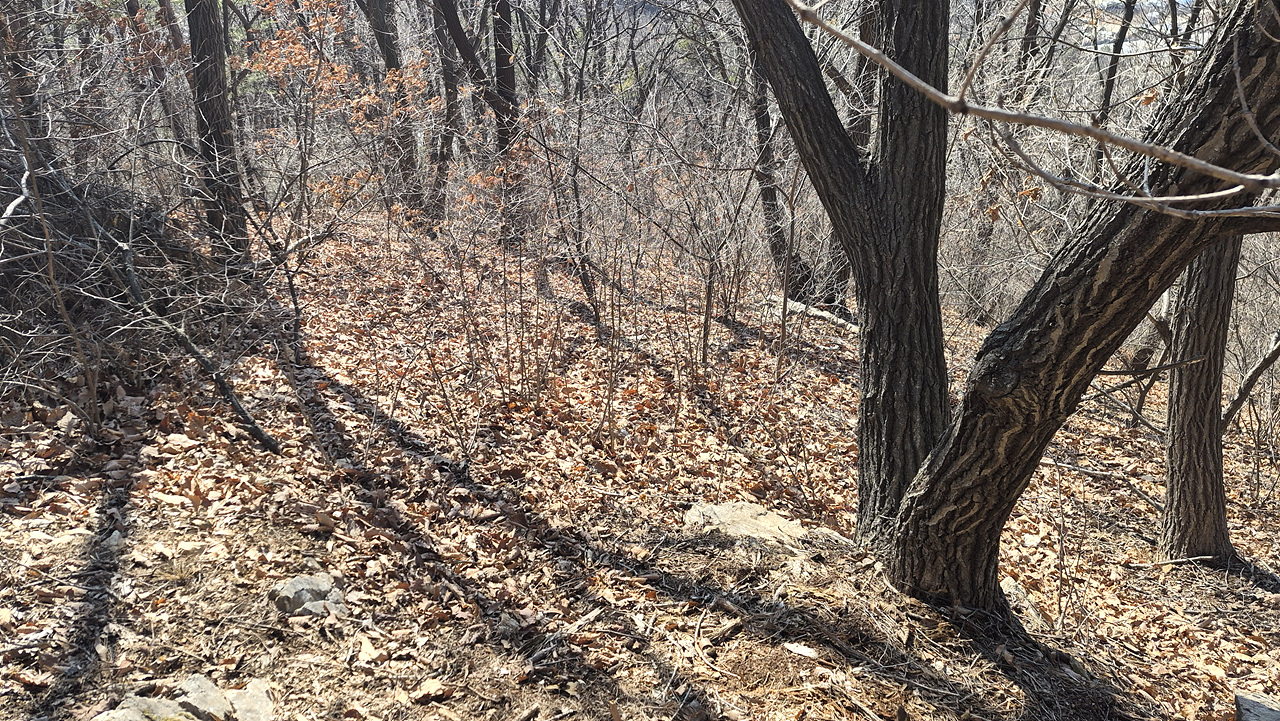 (양지산 뒤로 하고 길 없는 서쪽 사면으로)